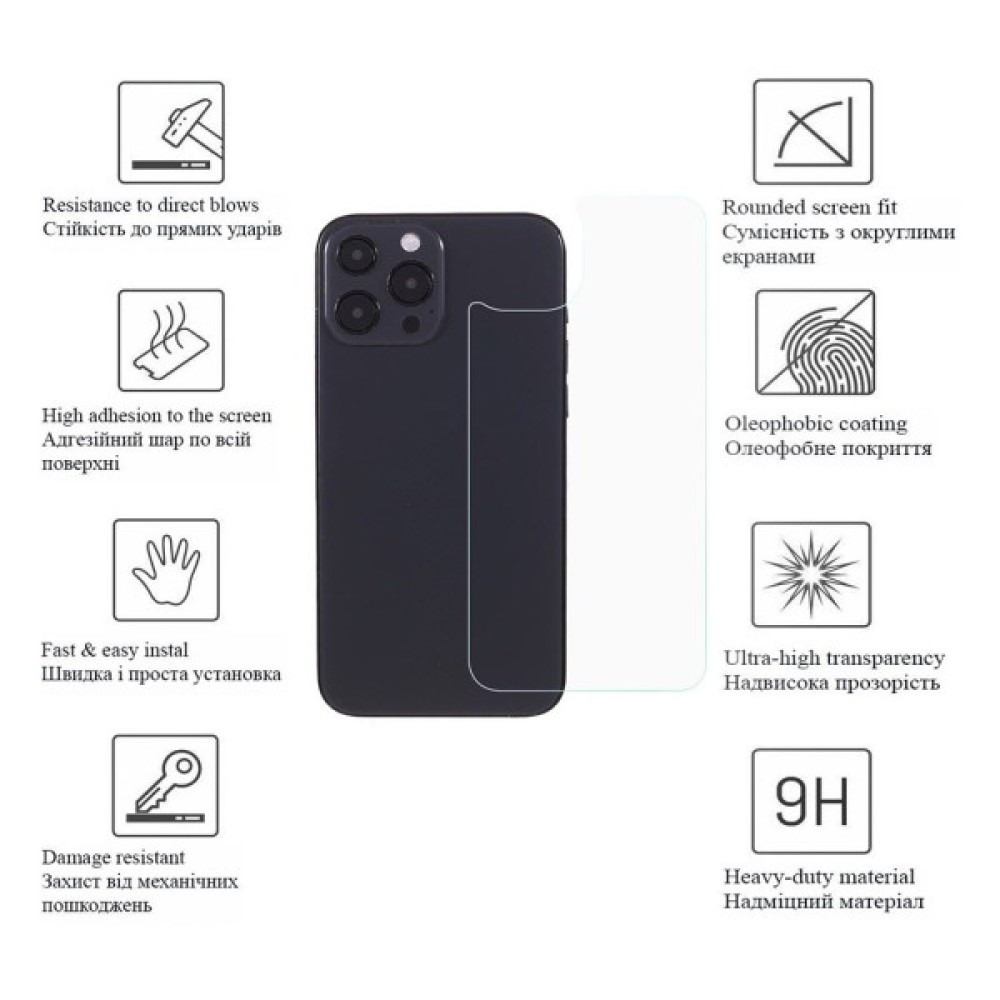 Захисне скло на задню панель телефону Drobak захищає корпус телефону від подряпин та відколів, зменшує виступ камер.