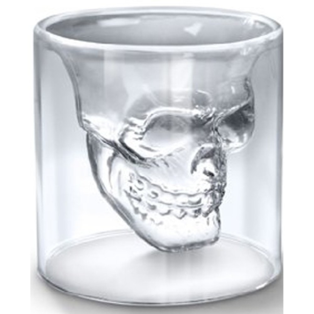 UFT для віскі 3D череп skull glass 70 мл створена за технологією Double Glass, так само його називають склянку в склянці. Зовнішня стінка має вигляд звичайної чарки, всередині якої знаходиться ще одна чарка у вигляді об'ємного черепа. Наливаючи будь-яку рідину в склянку, починає заповнюватися 3D череп, і як би зависаючи у зовнішній склянці. Відмінний подарунок для друзів. Занурить Вас у часи вікінгів, які після битв пили вино з черепів ворогів, що їх повалили. Також стане доречною на веселій вечірці або в компанії з гумором і без забобонів.