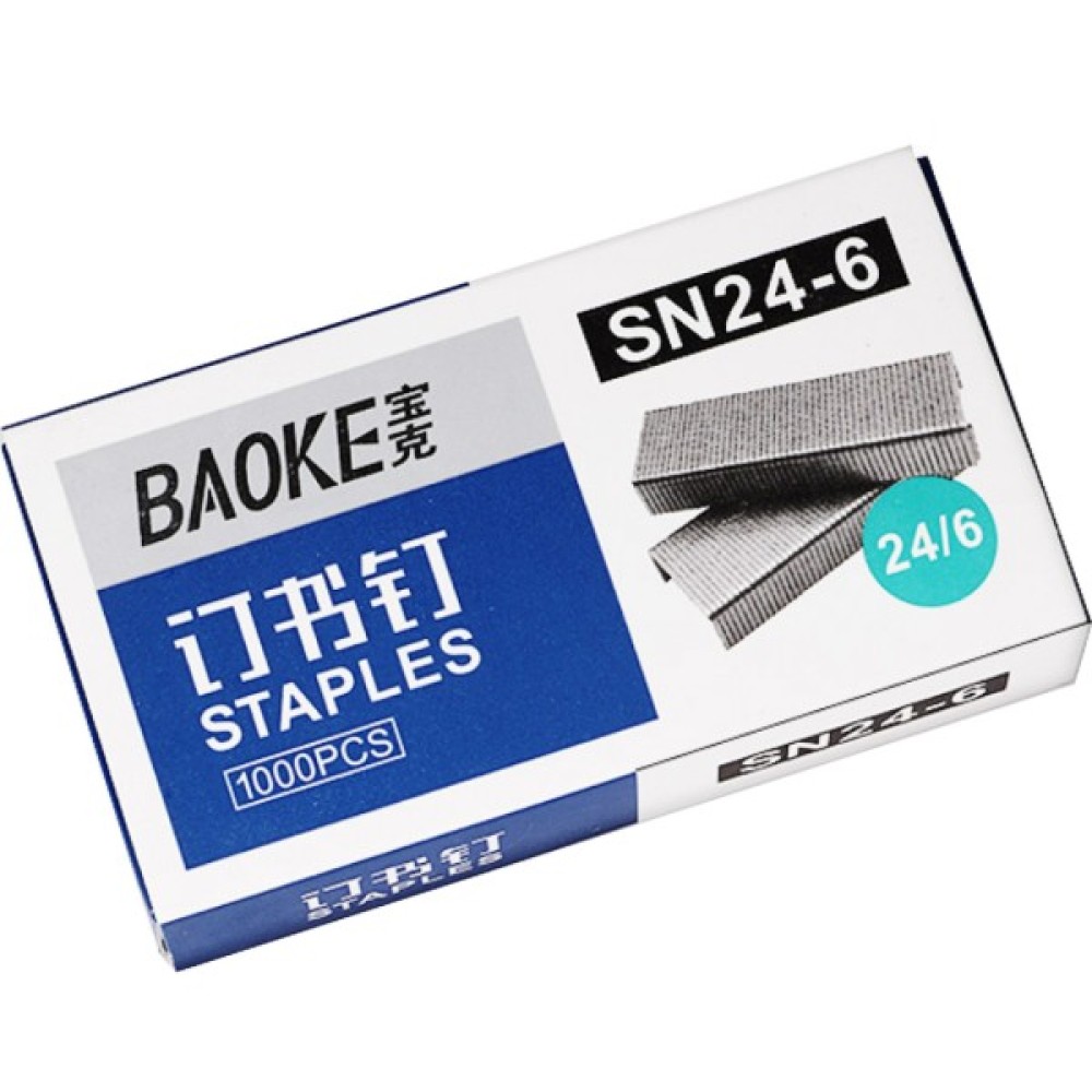 Скоби для канцелярського степлера Baoke №24/6, 1000 шт, 10 упаковок (SN24/6)
