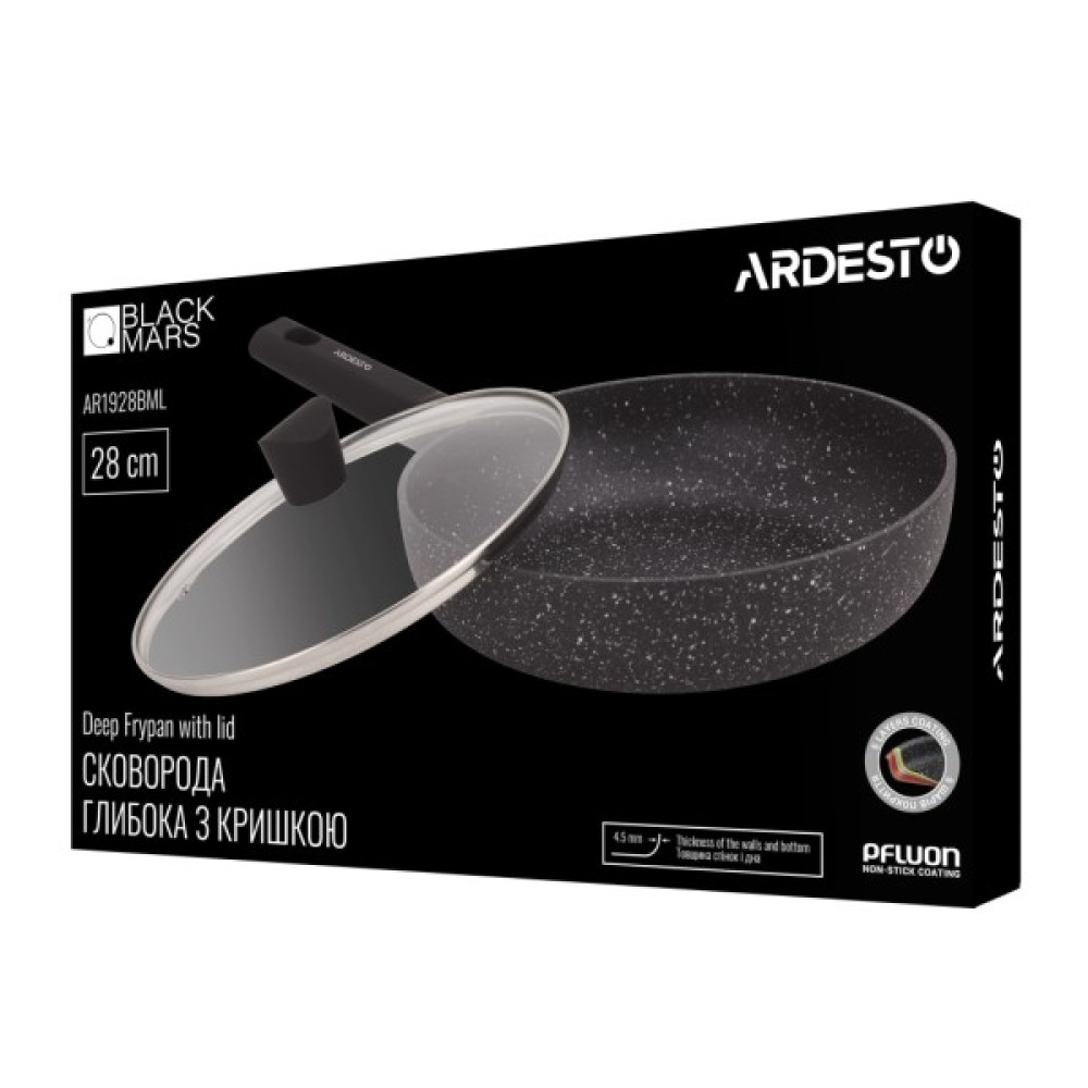 Завдяки сучасному дизайну глибока сковорода ARDESTO Black Mars буде доречною на будь-якій кухні. Корпус виробу з кованого алюмінію – легкого та безпечного матеріалу, який добре проводить тепло. Алюміній стійкий до корозії та не змінює смаку страв. Потовщені стінки забезпечують стійкість до деформації протягом усього терміну експлуатації. Сковорода чорного кольору з протипригарним покриттям Pfluon (5 шарів), яке забезпечує підвищену стійкість до подряпин, рівномірний розподіл тепла, захист від пригорання та легке очищення після приготування.