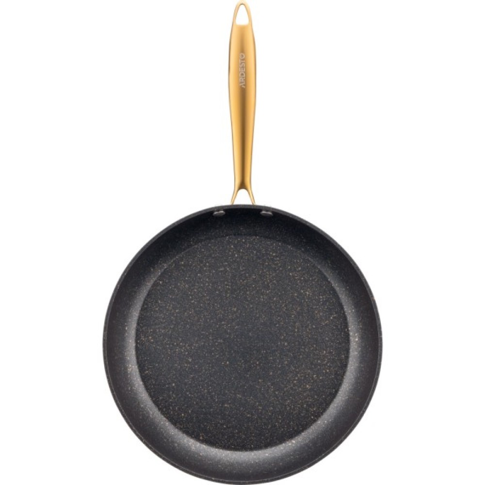 Сковорода ARDESTO Black Mars виготовлена з якісного алюмінію, завдяки чому забезпечується рівномірний розподіл тепла. Її діаметр становить 28 см за товщини стінок 2,5 мм. Сковорода має якісне протипригарне покриття Golden Marble, що зумовлює можливість приготування страв із використанням мінімальної кількості олії.