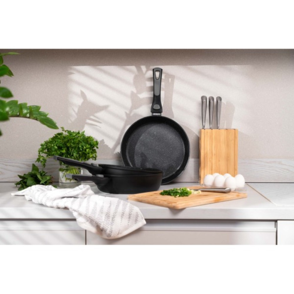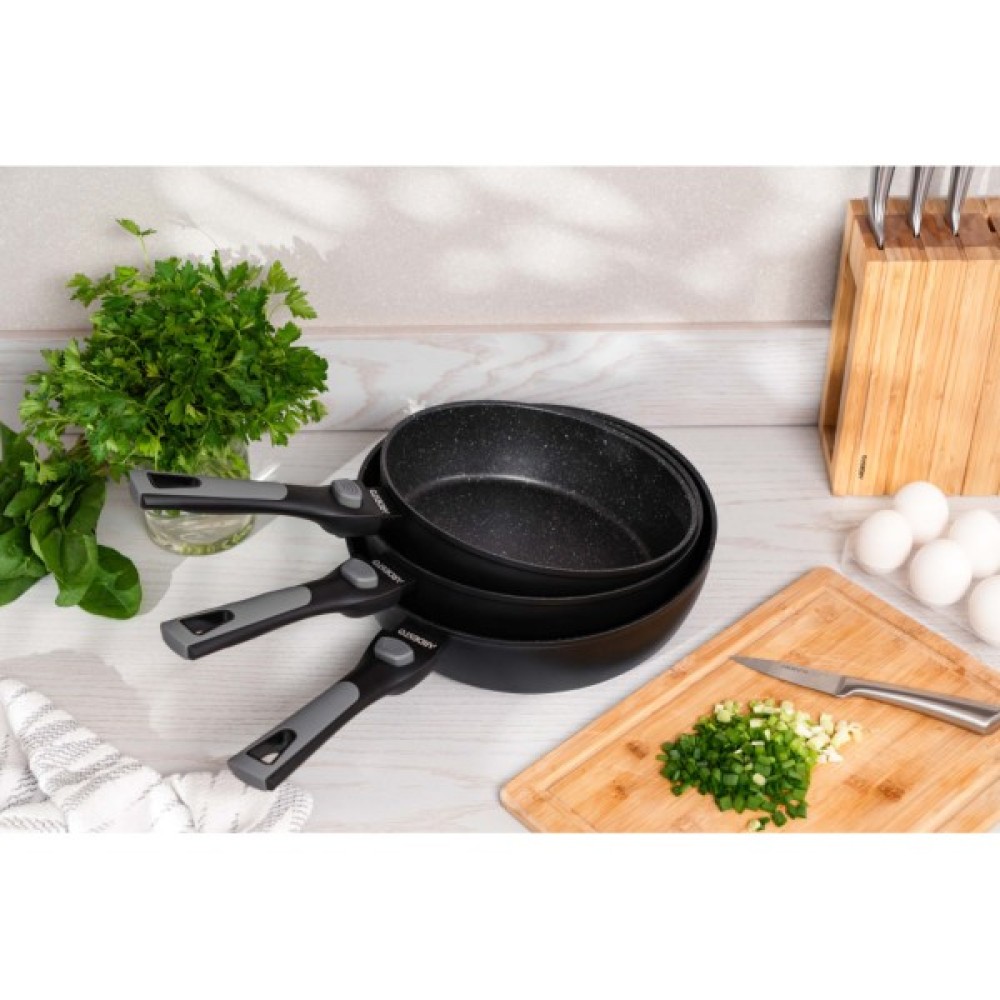 Глибоку сковороду зі знімним руків’ям ARDESTO Gemini виготовлено з кованого алюмінію, який забезпечує швидке та рівномірне нагрівання. Сковороду вкрито двома шарами протипригарного покриття PPG XYLAN PLUS, тож під час приготування можна використовувати менше олії та дотримуватися здорового харчування.