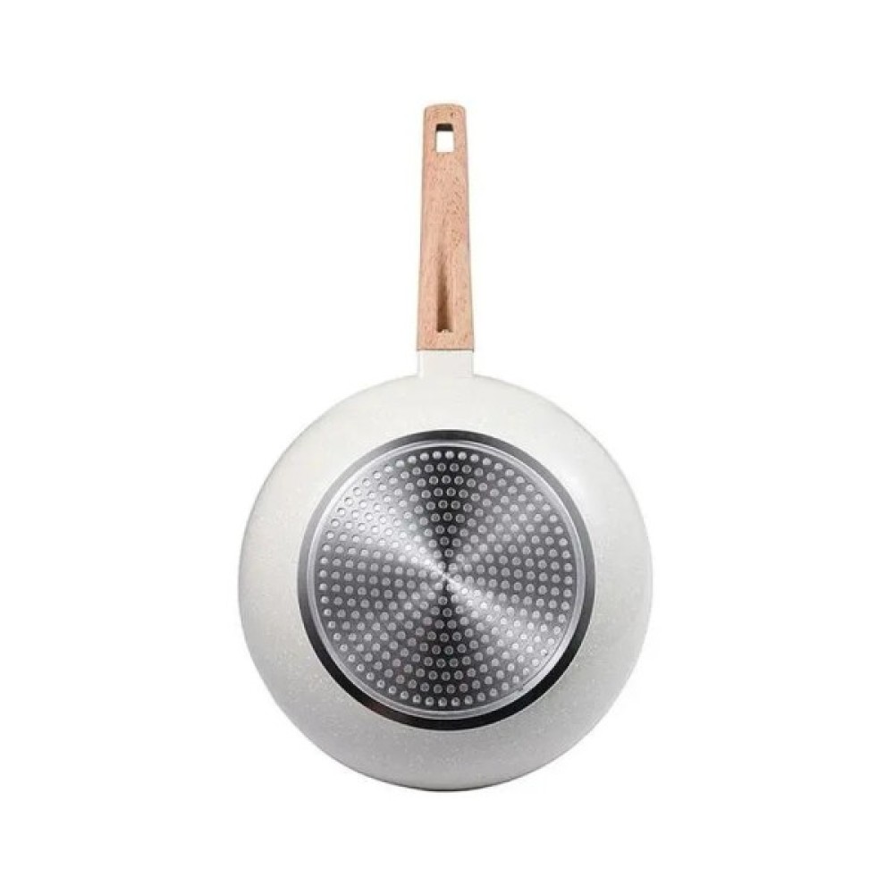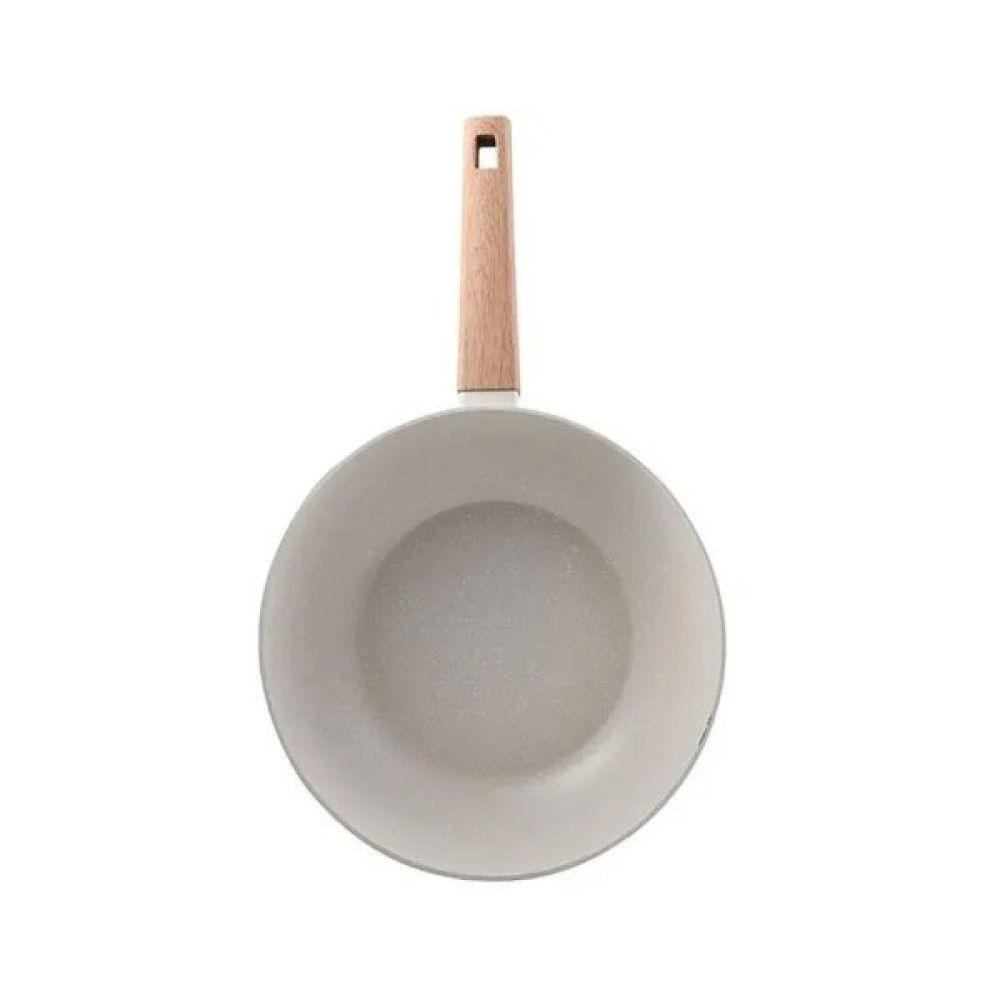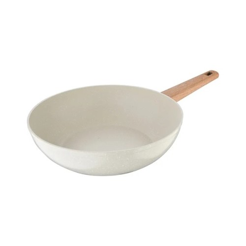 Bergner Naturally пропонує вам чудовий вок діаметром 28 см, який оптимально розподіляє тепло для ретельного приготування їжі без гарячих точок завдяки високоякісному кованому алюмінію, з якого він виготовлений. Цей унікальний матеріал має товсте дно, рівномірно розподіляє тепло від центру до країв сковороди та забезпечує високу стійкість до корозії. Вок ідеального розміру для обсмажування інгредієнтів, які не випадають. Ергономічна дерев'яна ручка з м'яким покриттям забезпечує надійне утримання вока. Насолоджуйтесь колекцією, розробленою з індукційною основою, яка підходить для всіх плит на ринку, а також її кремовим покриттям з витонченими золотими та білими крапками, які додадуть тепла вашій кухні. Легко миється, для продовження терміну служби продукту рекомендується ручне миття.