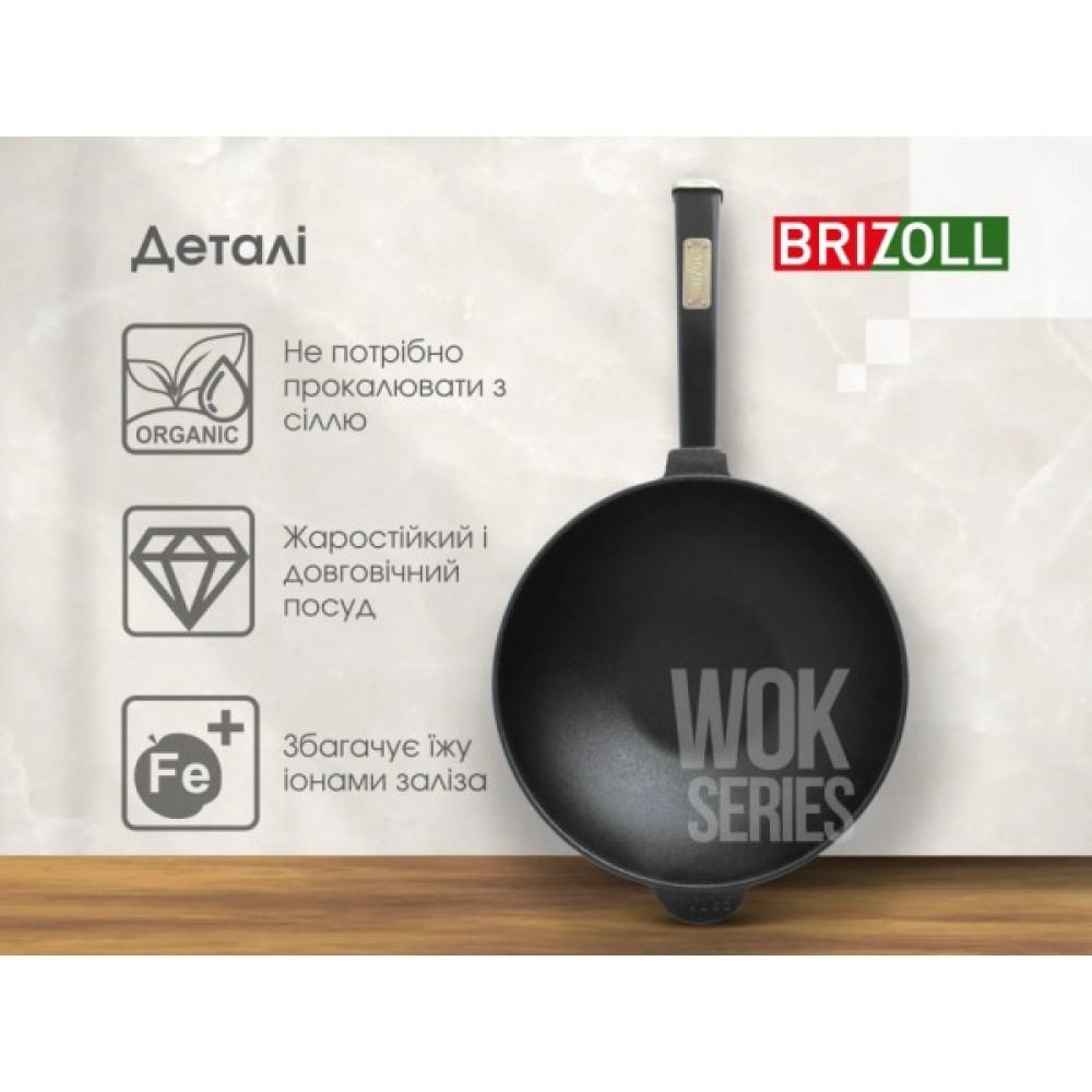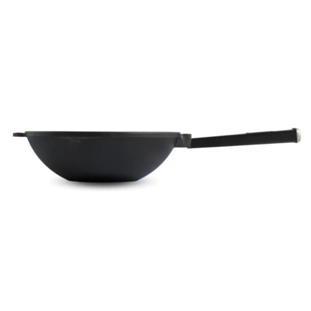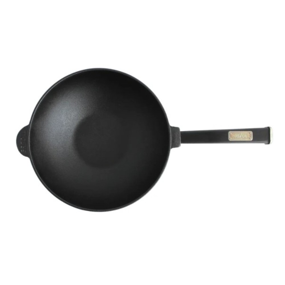 Чавунна сковорода WOK ТМ «BRIZOLL» має ідеальну товщину дна та стінок, яка відповідає стандартам якості, Не покрита тефлоновим чи будь-яким іншим покриттям, а має природні антипригарні властивості, які з часом експлуатації зростають.