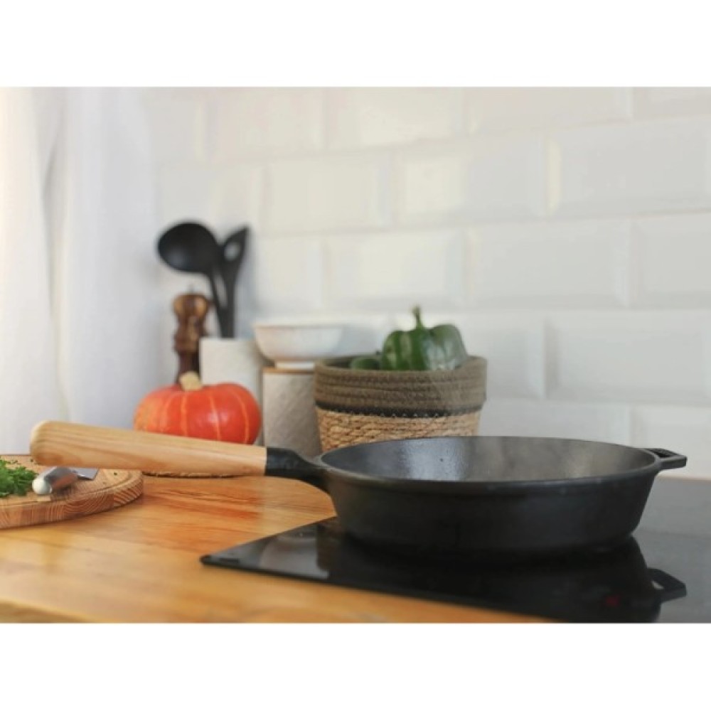 - Має органічне покриття - покрита олією, що забезпечує їй відмінні антипригарні властивості.