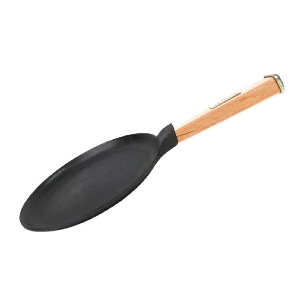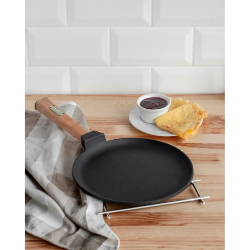 Сковорода Brizoll Optima чавунна з ручкою для млинців для млинців виготовлена з литого чавуну, ручка виконана з вільхи, має ергономічну форму і зручно лежить у руці. В асортименті сковорода представлена в діаметрі 220 і 240 мм. Низький бортик 15 мм, забезпечує зручність у приготуванні млинців, оладок, грінок тощо.