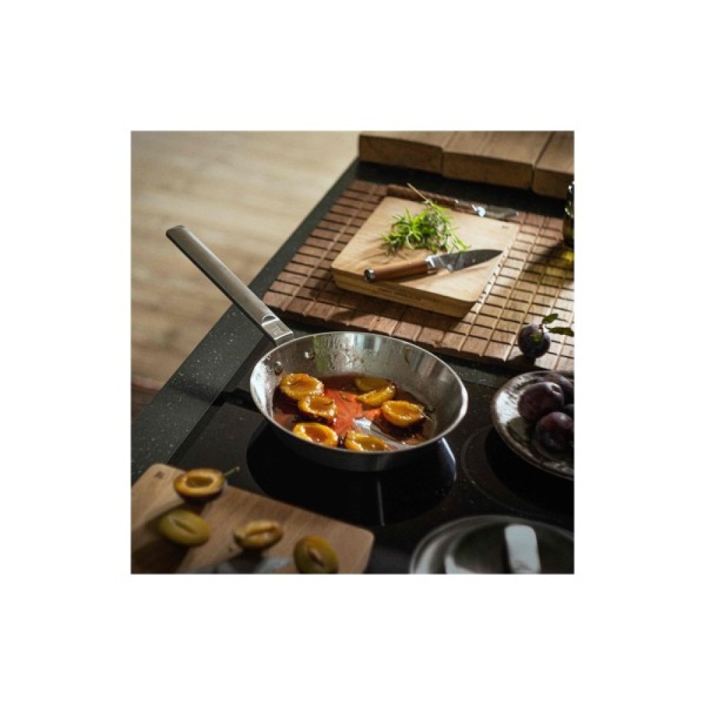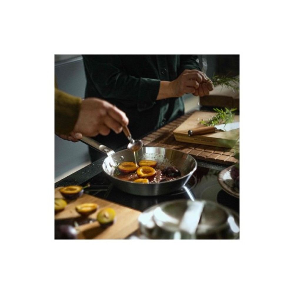 Зручна ручка зі сталі нагрівається менше, ніж звичайні, що додає комфорту під час готування. Сумісно з усіма типами плит, включно з індукційними, та витримує температуру до 270 °C, тому підходить не лише для приготування на плиті, а й для використання в духовці для запікання.