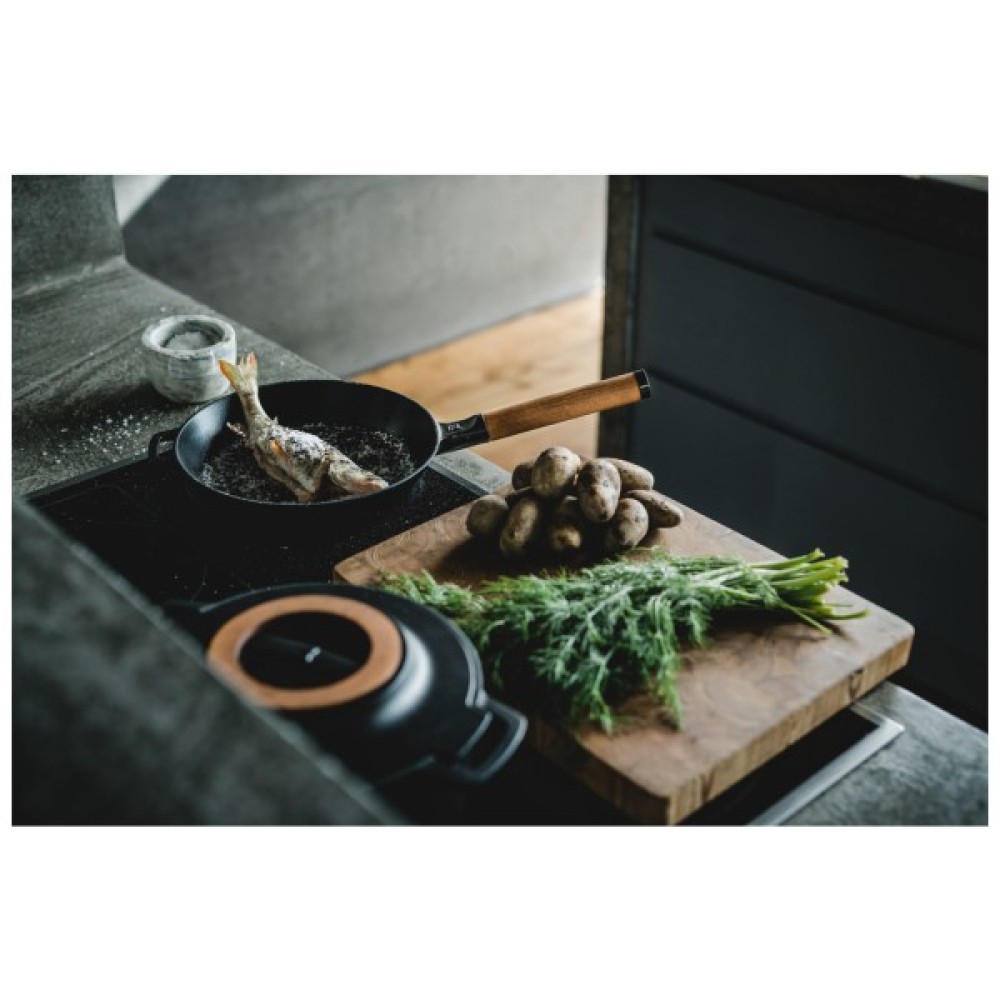 Fiskars Norden виготовлена з високоякісного чавуну, який може витримувати високі температури та має унікальне протипригарне покриття Thermium на чорній матовій емалі. Завдяки такій структурі їжа не прилипатиме під час готування навіть за високих температур. Ручка виробу виготовлена з деревини фінської берези та може бути знята за потреби. Ця модель стане чудовим поповненням вашого кухонного арсеналу та зможе слугувати не один рік.