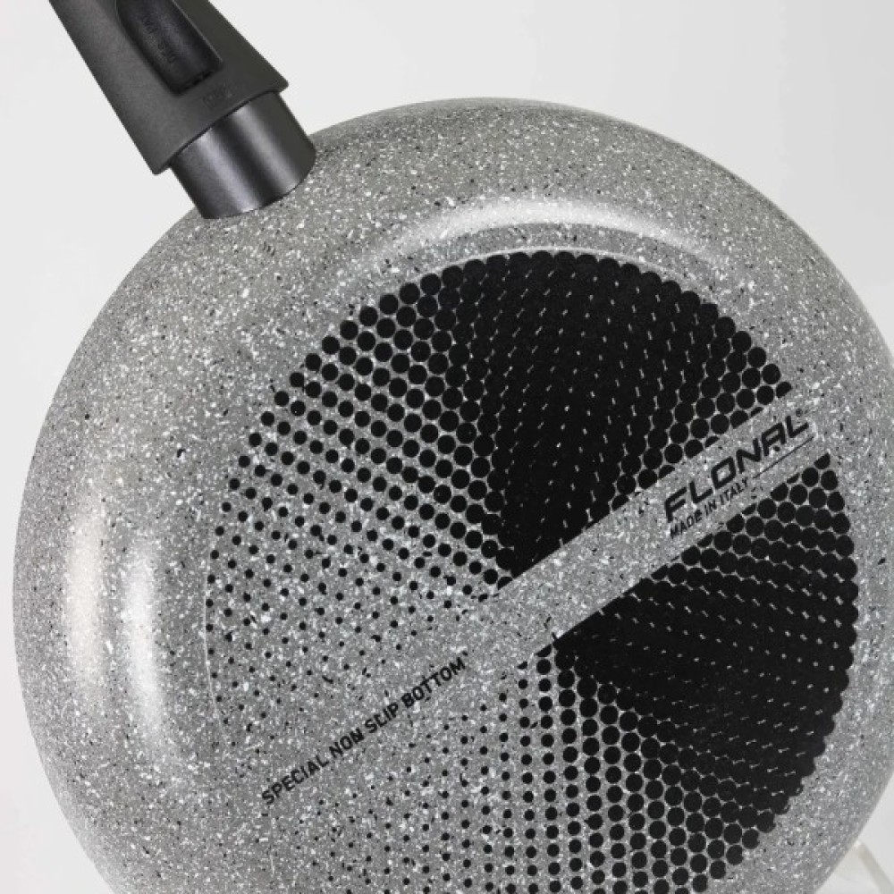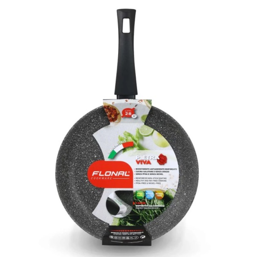 Лінійка посуду Flonal Pietra Viva заснована на необхідності забезпечити споживача високоякісним посудом для щоденного та інтенсивного використання за помірною вартістю. І таки особливості, як потовщені стінки, індикатор нагріву, протиковзке дно та надстійке антипригарне покриття підкреслюють, що цей зручний для приготування їжі посуд слугуватиме не один рік.