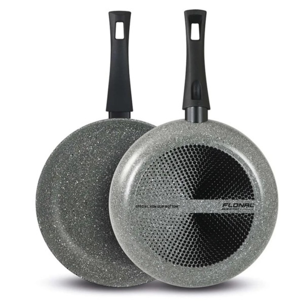 Лінійка посуду Flonal Pietra Viva заснована на необхідності забезпечити споживача високоякісним посудом для щоденного та інтенсивного використання за помірною вартістю. І таки особливості, як потовщені стінки, індикатор нагріву, протиковзке дно та надстійке антипригарне покриття підкреслюють, що цей зручний для приготування їжі посуд слугуватиме не один рік.