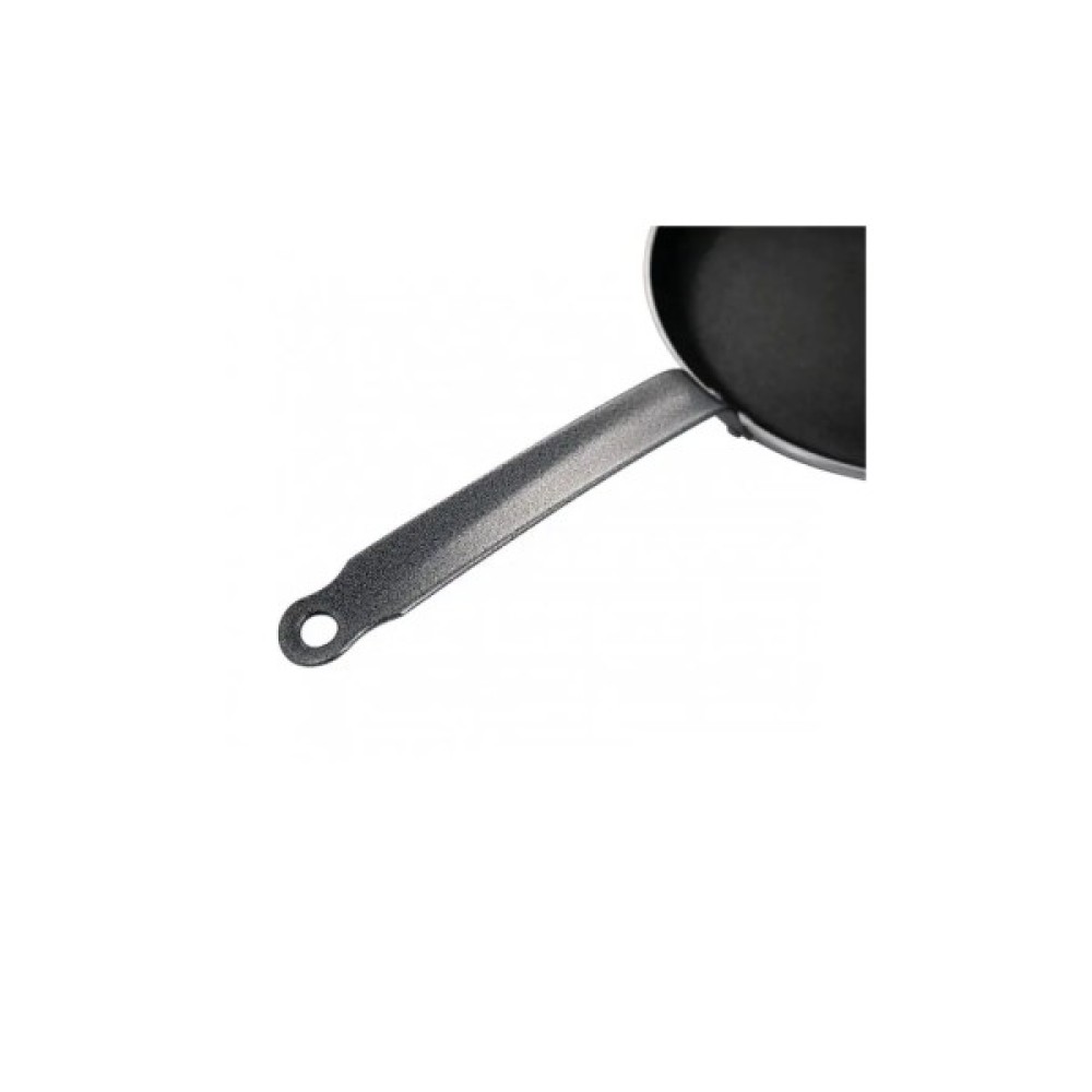 - Ергономічна ручка сковороди виготовлена із нержавіючої сталі. Прикріплена до основи за допомогою заклепок, тому ручка не нагрівається.