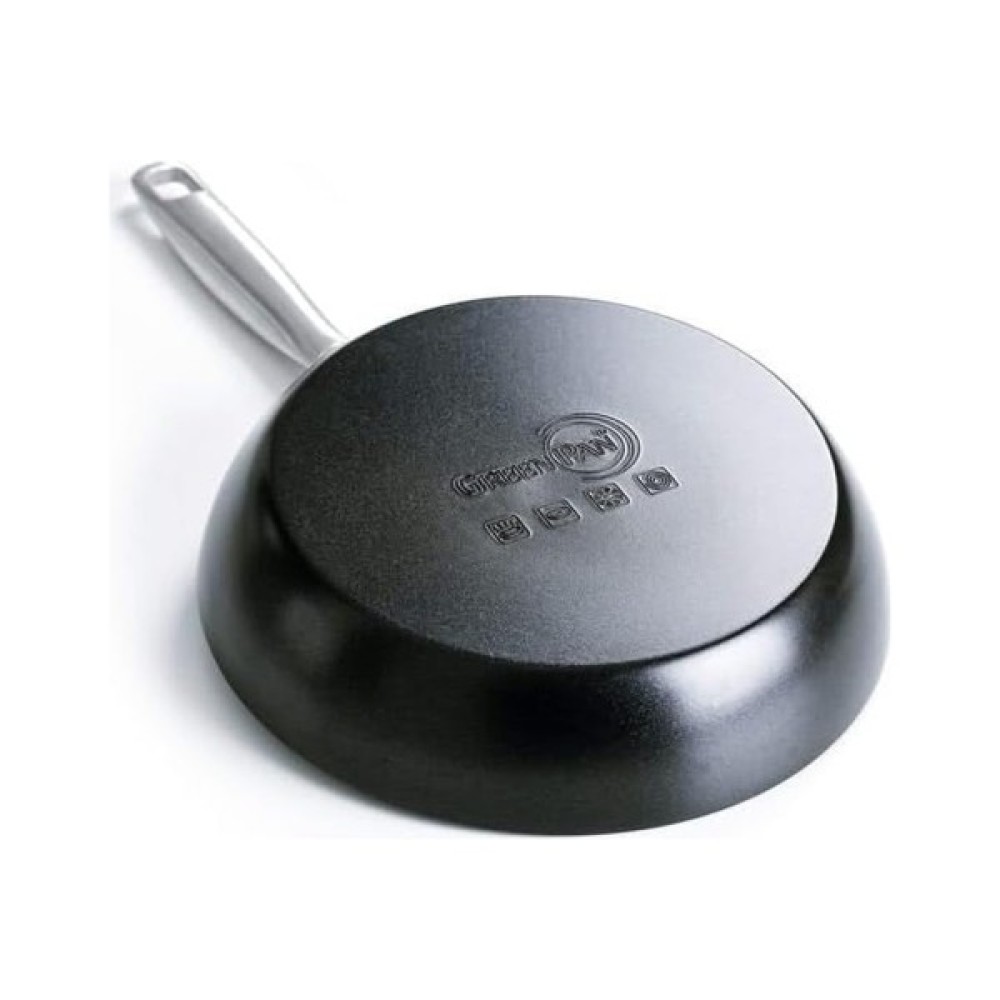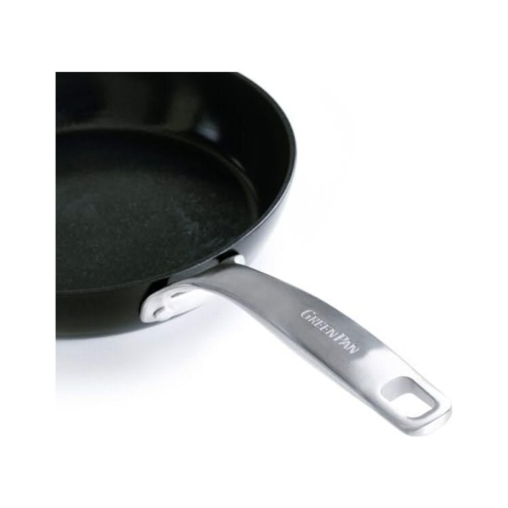 Ця стильна сковорода GreenPan з матовою ручкою з нержавіючої сталі придатна для використання в духовці (до 220 ° C) і посудомийній машині, хоча рекомендується мити її вручну.