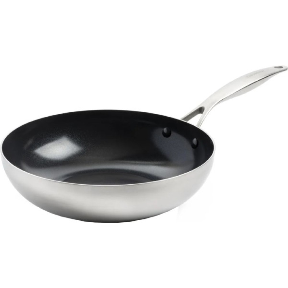 Розроблений для кухарів, які хочуть вивести свою кулінарну творчість на новий рівень, 3-шаровий Wok з нержавіючої сталі GreenPan Geneva з антипригарним покриттям поєднує в собі високоякісні матеріали, ультраефективні функції та елегантний дизайн. 3-шарова конструкція з нержавіючої сталі з матовою обробкою стане прекрасним доповненням до будь-якої кухні.
