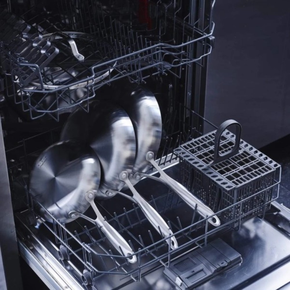 Керамічний антипригарний матеріал Thermolon сьомого покоління без вмісту PFAS, покращений діамантами, забезпечує виняткове виділення їжі та водночас стійкий до подряпин. Оздоблений стильною матовою ручкою з нержавіючої сталі, цей антипригарний Wok можна мити в посудомийній машині, хоча завжди рекомендується ручне миття.