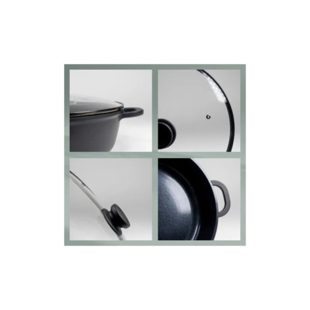багатошарове дно; отвір на кришці для відводу пари; ергономічна ручка; дві ручки