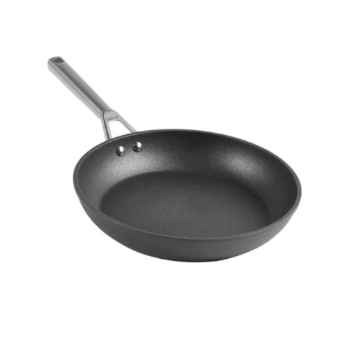 Сковорода виготовлена з міцного кованого алюмінію та має зносостійке твердо-анодоване покриття, що забезпечує довговічність. Вона стійка до подряпин і дозволяє безпечно використовувати металеві кухонні прибори. Литі ручки з нержавіючої сталі забезпечують надійний хват та підкреслюють преміальний статус.