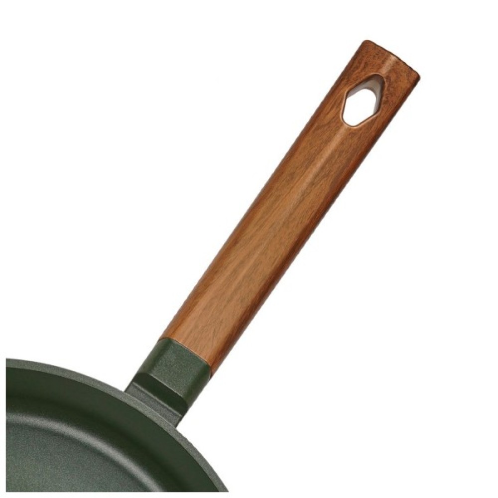 - Ергономічна ручка стилізована під дерево з петлею для підвішування сковороди