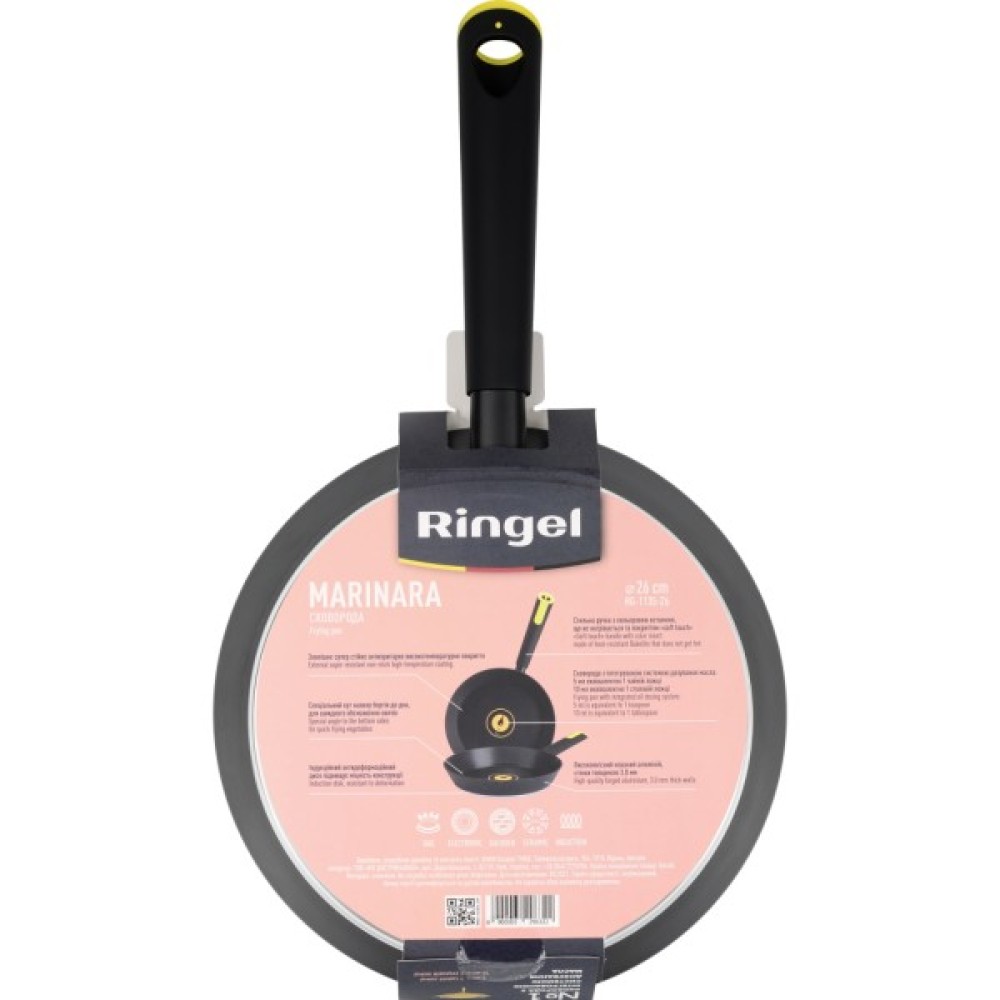 Cковорода MARINARA від Ringel - це універсальний помічник на кухні для готування і розігрівання найрізноманітнішої їжі. Нестандартний кут нахилу борта зроблений як у професійному кухарському посуді. Цей кут нахилу дозволяє готувати овочі з «підкиданням» і швидким обсмаженням.