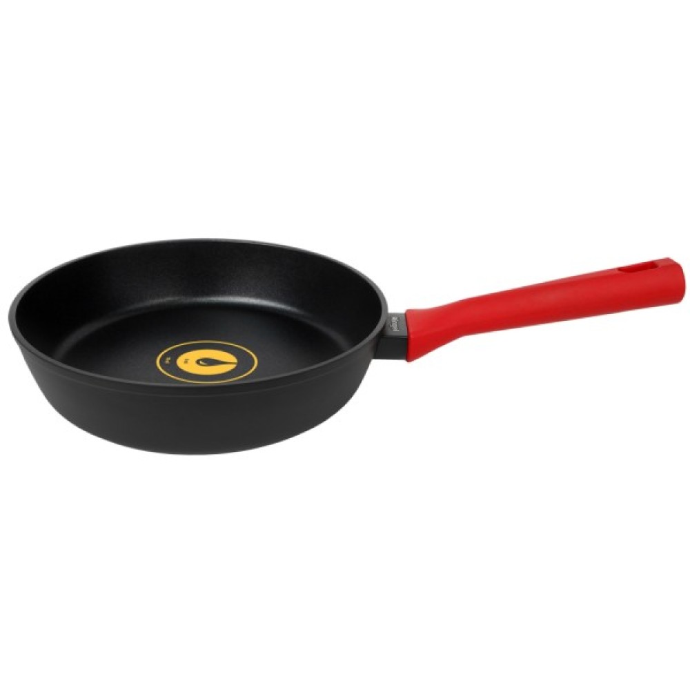 Зручність використання даної сковороди досягається завдяки ергономічній ручці з бакеліту. Додаткове покриття soft-touch, крім тактильного задоволення, захищає руки від опіків і дозволяє не вислизає навіть з вологих долонь. Додаткова яскрава вставка підкреслює дизайн сковороди.