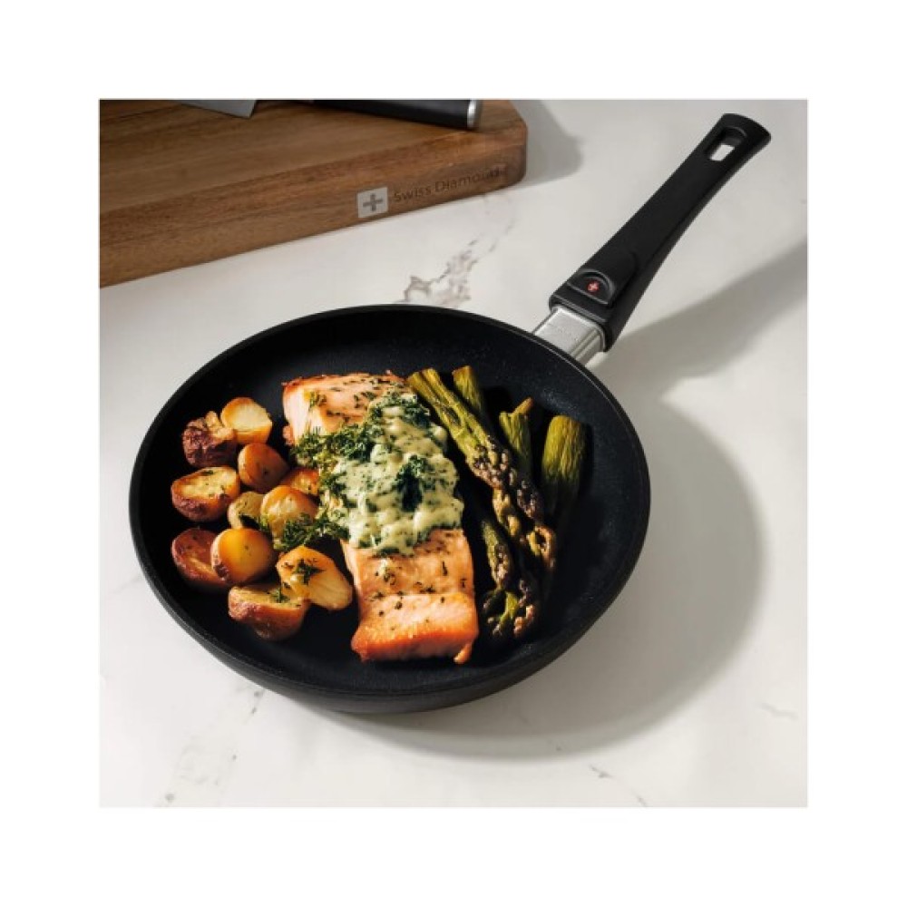 Сковорода Swiss Diamond XD Induction виготовлена в Швейцарії з товстого литого алюмінієвого корпусу, покритого надзвичайно міцним алмазним покриттям XD.Особливості: