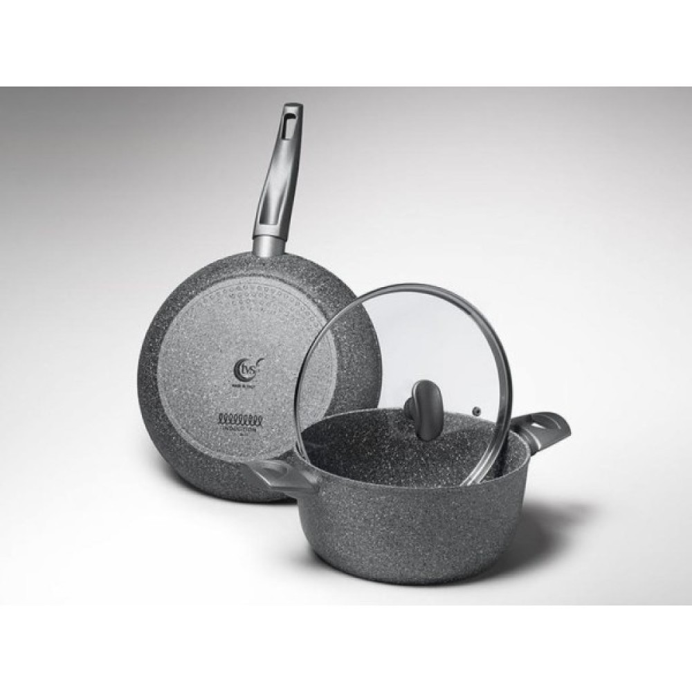 У серії Mineralia induction - TVS застосувала своє революційне покриття, посилене мінеральними частинками, до основи. Потужний союзник на варильній панелі і прекрасний сюрприз згодом, тому що його вражаюча здатність протистояти подряпинам і стиранню гарантує йому ідеальні умови протягом довгого часу.