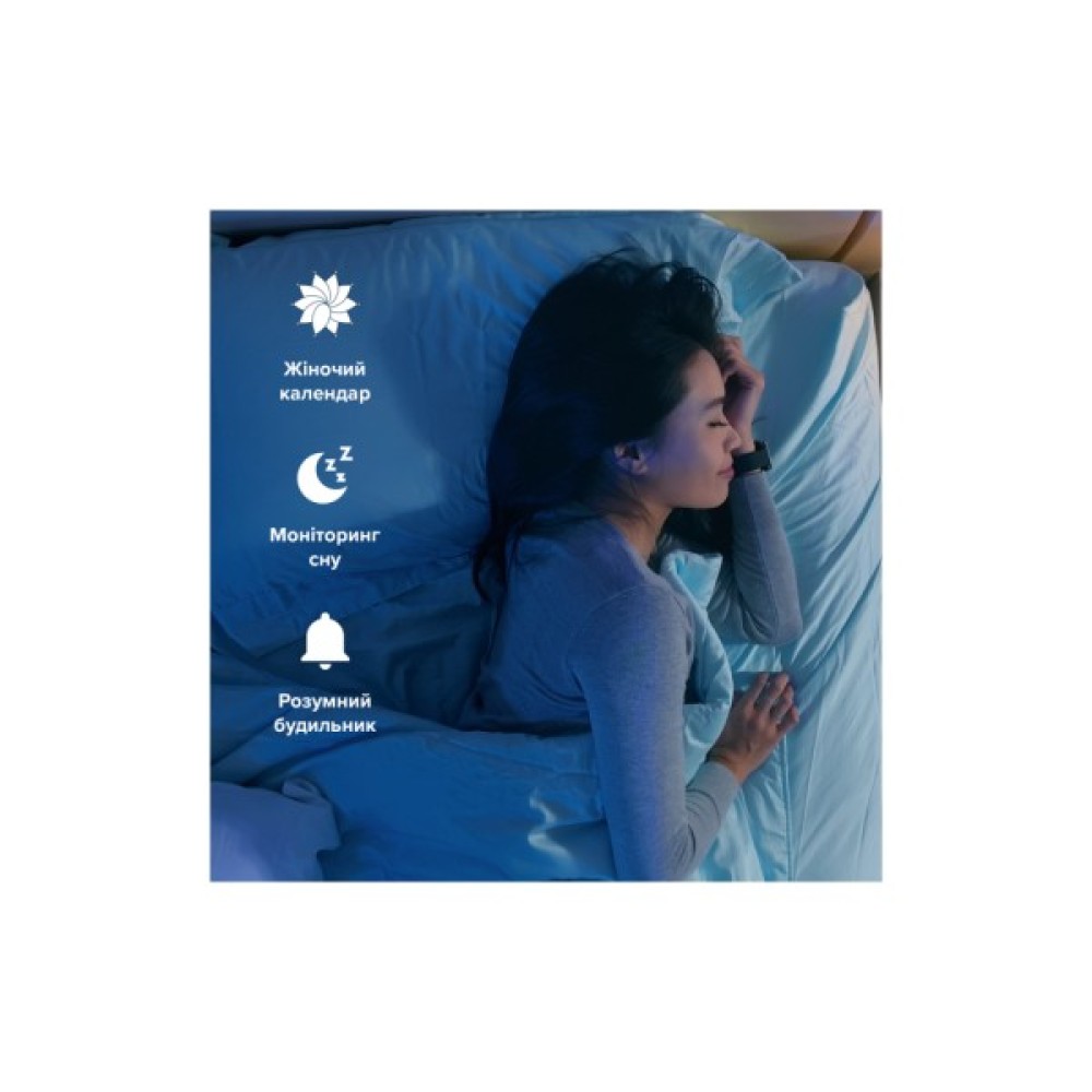 Цей пристрій не лише відстежує фізичну активність, але й стежить за якістю вашого сну, допомагаючи забезпечити вам повноцінний відпочинок. З функцією нагадування про вживання води та іншими підказками щодо здоров'я, ви завжди будете в курсі свого фізичного стану.