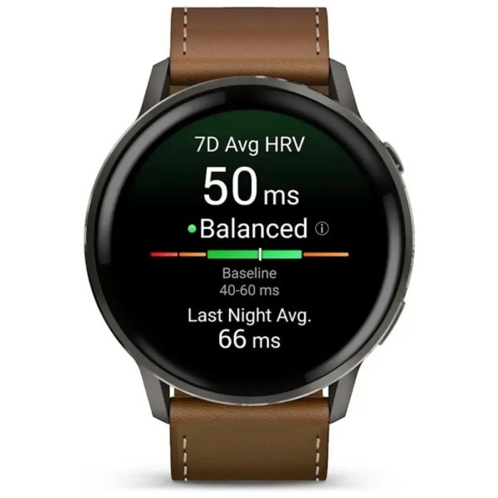 Venu 4 (45mm), Black w/ Slate + Leather, GPS смарт