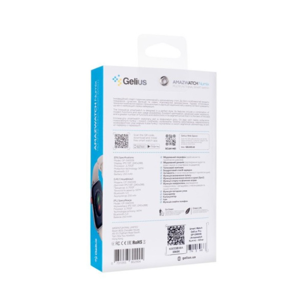 Смарт-годинник Gelius Pro GP-SW009 (Amazwatch Numix) Silver (2099900996962) — це не просто аксесуар, а сучасний технологічний компаньйон, що стане незамінним у повсякденному житті. Універсальний дизайн цього годинника робить його ідеальним рішенням як для чоловіків, так і для жінок, відображаючи ваш стиль і водночас надаючи бездоганний функціонал.
