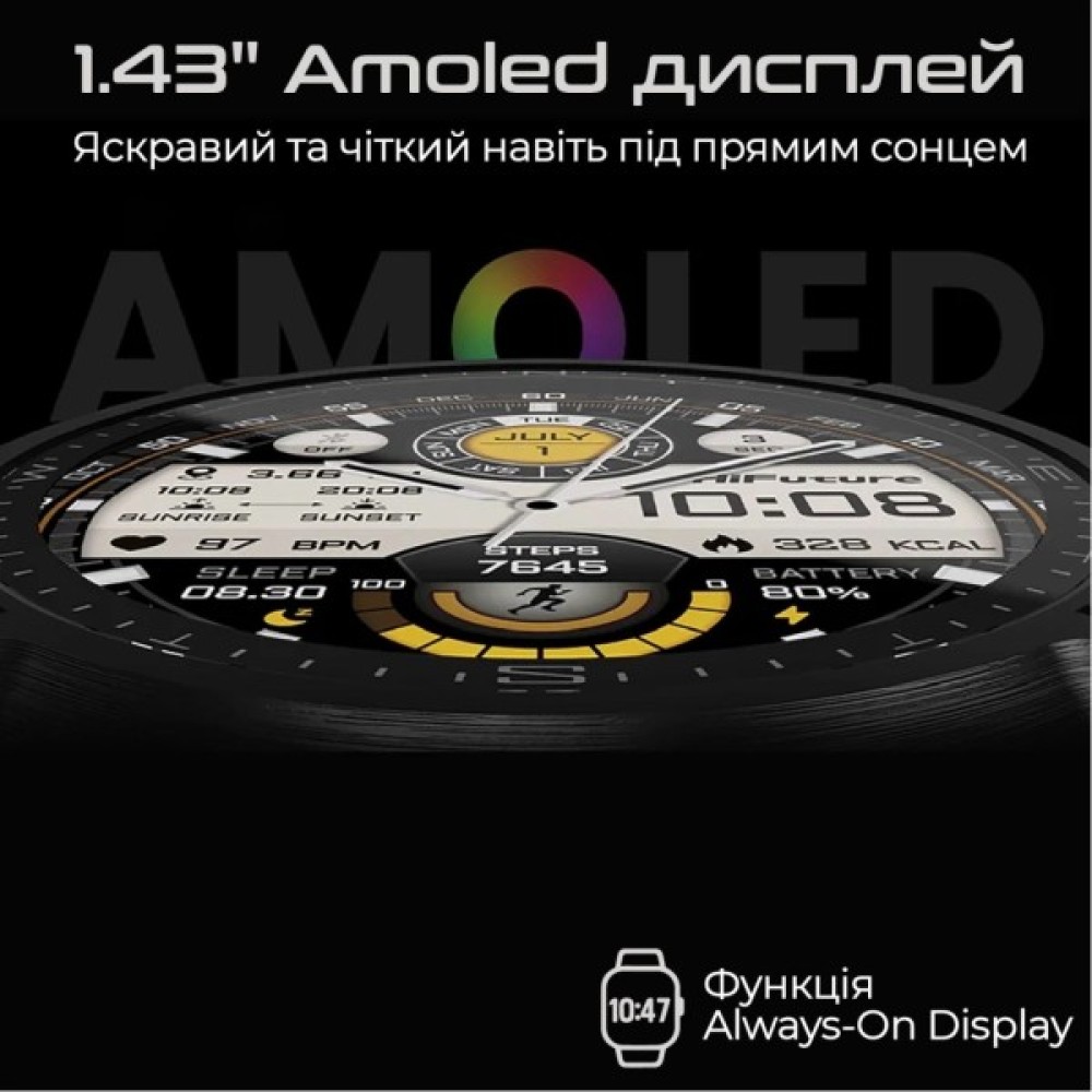 Смарт-годинник HiFuture MIX 3 black (mix3.black) створений для тих, хто цінує стиль, функціональність та надійність. Завдяки 1.43-дюймовому AMOLED дисплею з яскравим і контрастним кольоровим зображенням, ви отримаєте чіткість і яскравість картинки навіть під прямими сонячними променями. Функція Always-On Display дозволяє завжди бути в курсі часу та отримувати повідомлення без зайвих рухів, що робить використання годинника надзвичайно зручним.
