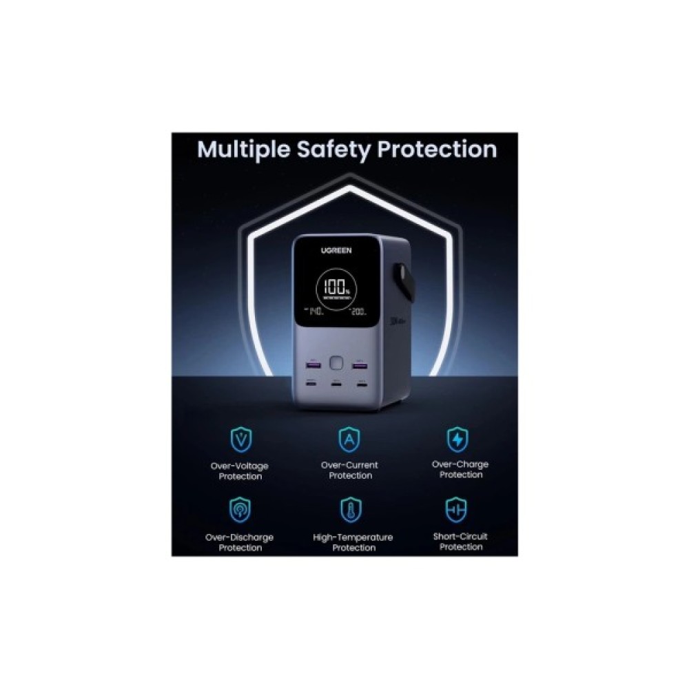 Вбудований захист від перевантаження по струму, перенапруги, перезарядження, перерозрядження, перегріву та короткого замикання робить батарею Ugreen 48000mAh 300W PB770 безпечною для вас та ваших пристроїв.
