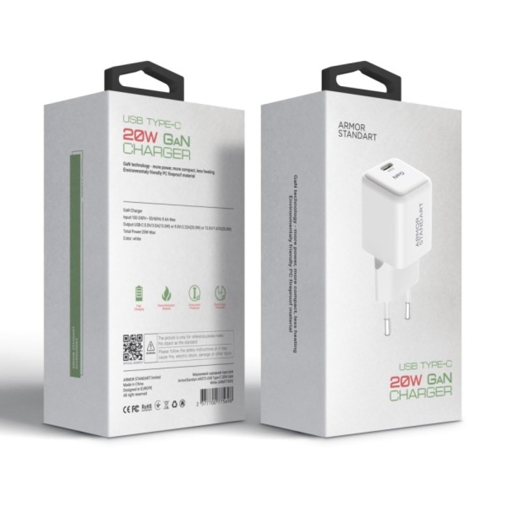 Елегантний білий дизайн корпусу не лише додає привабливого вигляду, але й забезпечує стійкість до пошкоджень завдяки використанню високоякісних матеріалів. Цей зарядний пристрій — ідеальний супутник для подорожей, легко поміститься у будь-якій сумці або кишені, надаючи вам свободу та впевненість у будь-якому середовищі. Обираючи Armorstandart AR373, ви інвестуєте у вироб, який відповідає найвищим стандартам якості та технології. Це потужний помічник, що підтримає ваш активний ритм життя.