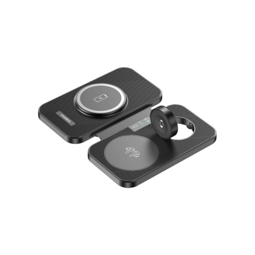 Зарядний пристрій Choetech Wireless magnetic 3-in-1 15W black (T616-F) - це ідеальне рішення для тих, хто цінує комфорт й ефективність. Цей бездротовий зарядний пристрій поєднує в собі найкращі технології для зарядки трьох пристроїв одночасно: смартфона, смарт годинника та TWS навушників.