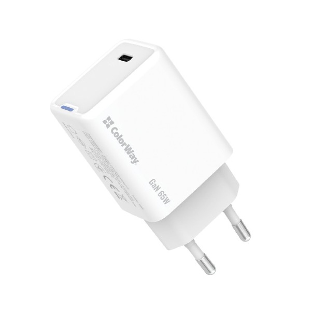 Зарядний пристрій ColorWay GaN Mini 65W PD Port PPS USB-C white (CW-CHS049PD-WT)