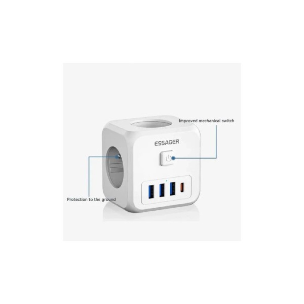 Essager 3xUSB + 1xUSB-C не лише економить ваш час, але й дбає про навколишнє середовище, адже шнур живлення не потребує постійного підключення завдяки вбудованому вимикачу. Оберіть Essager для максимальної ефективності та надійності у щоденному житті.