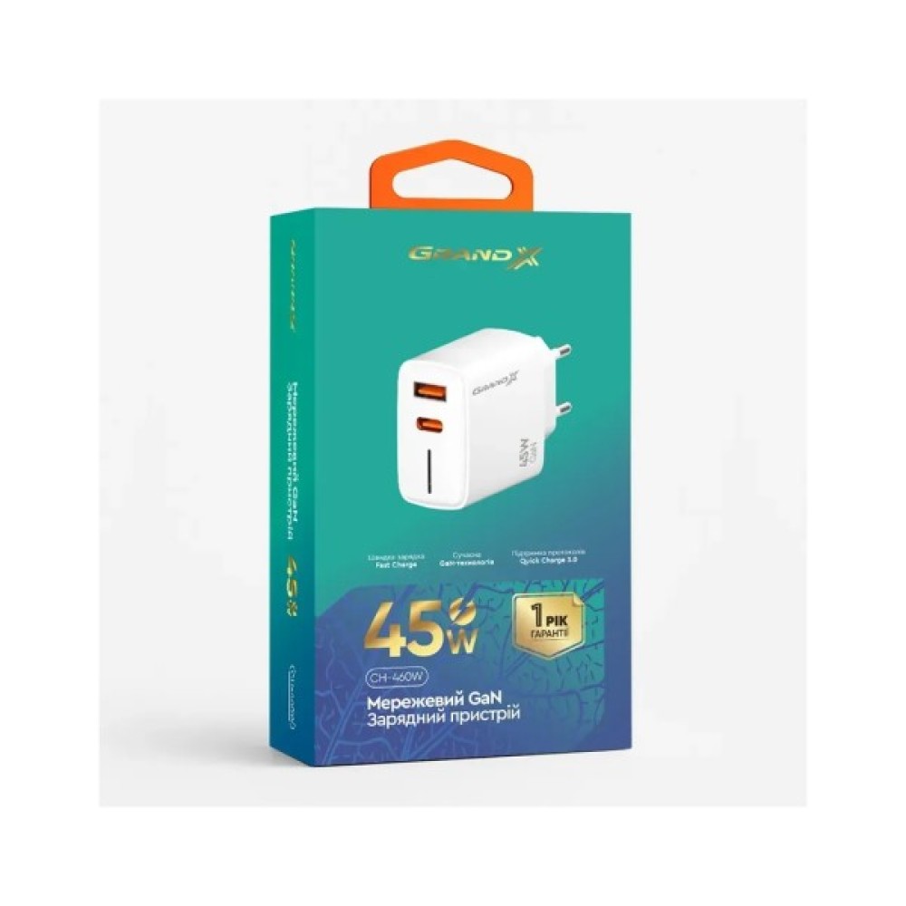 GaN 1xUSB-C + 1xUSB QC3.0 45W white