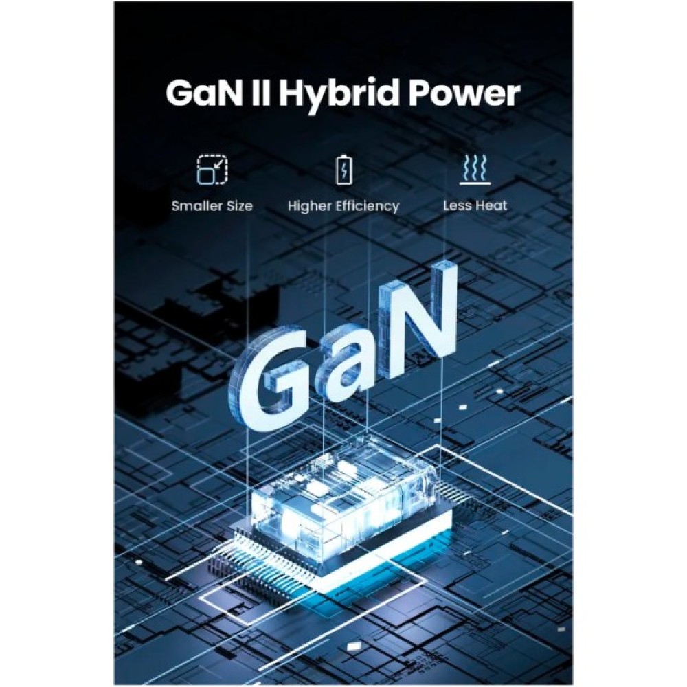 Багатопортовий дизайн цього пристрою з чотирма USB-портами (два USB Type-C та два USB Type-A) дозволяє одночасно заряджати до чотирьох ґаджетів, надаючи неабияку гнучкість. Інноваційна технологія GaN III не лише зменшує розміри зарядного пристрою, але і підвищує його ефективність, тоді як система Thermal Guard захищає від перегріву.