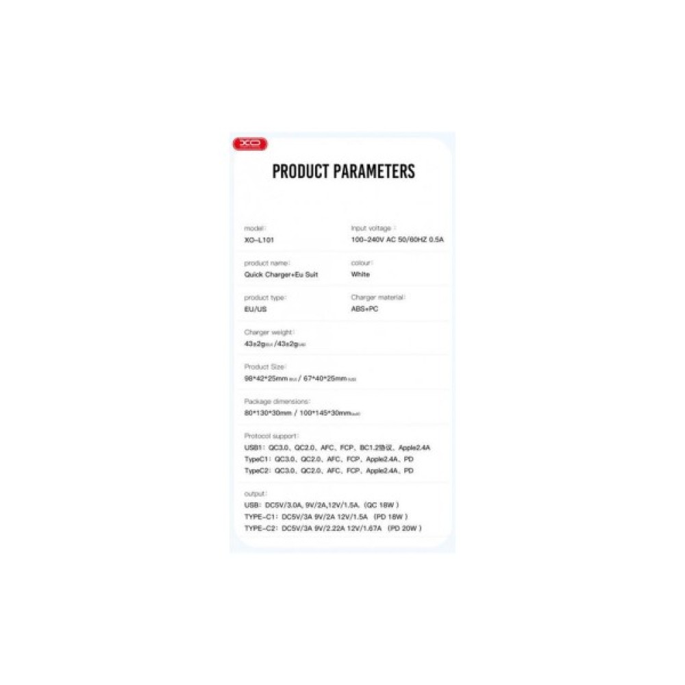 Вибираючи зарядний пристрій XO L101, ви отримуєте якість, зручність та надійність в одному пристрої, готовому забезпечити вас енергією, де б ви не знаходилися.