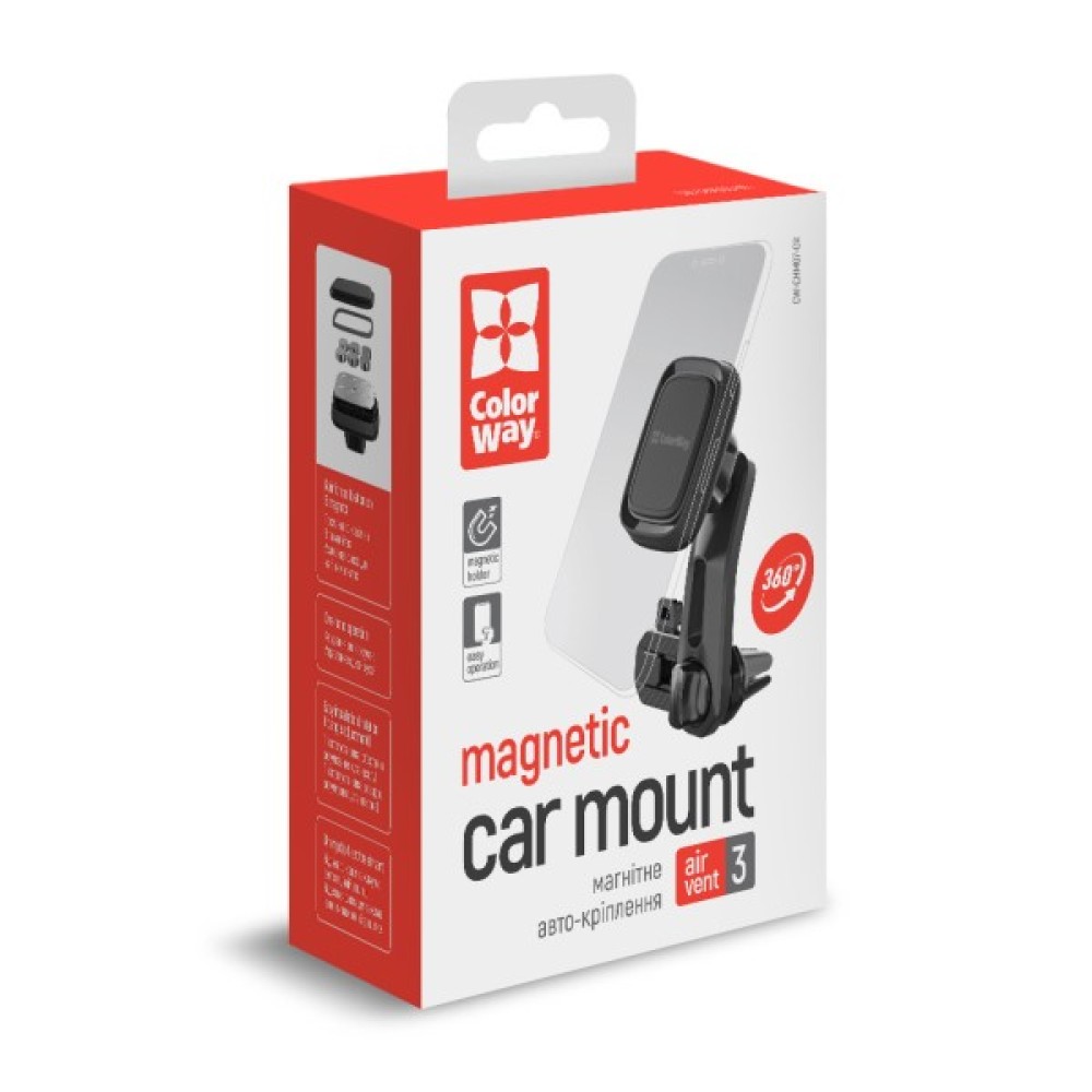 Універсальний автотримач ColorWay Air Vent-3 (360 rotation) magnetic Gray (CW-CHM07-GR)