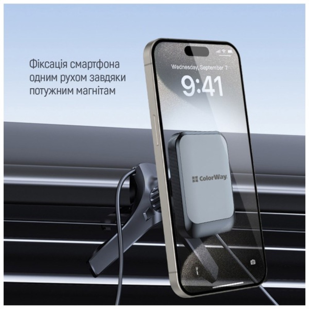 - Фіксація смартфона одним рухом завдяки потужним магнітам