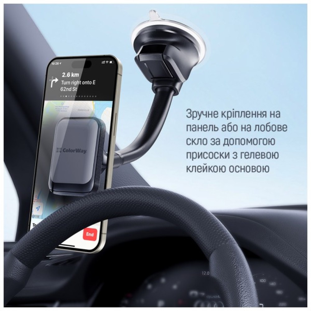 - Фіксація смартфона одним рухом завдяки потужним магнітам