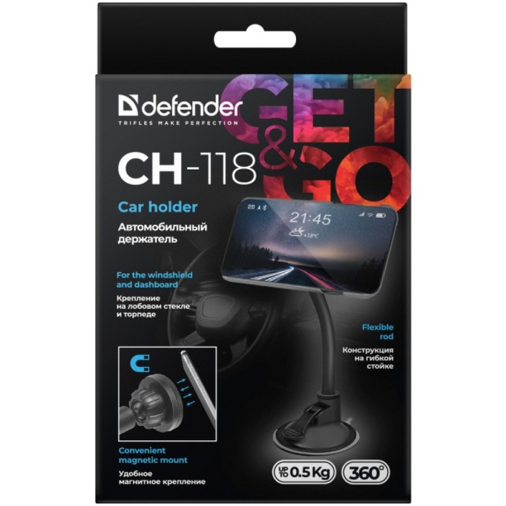 Автотримач магнітний Defender CH-118 підходить для телефона, смартфона, навігатора. Надійна фіксація на лобовому склі та приладовій панелі, навіть із текстурною поверхнею. Пристрій повертається на 360° градусів і фіксується в будь-якій позиції! Металеві пластини для кріплення смартфона на тримачі входять до комплекту.