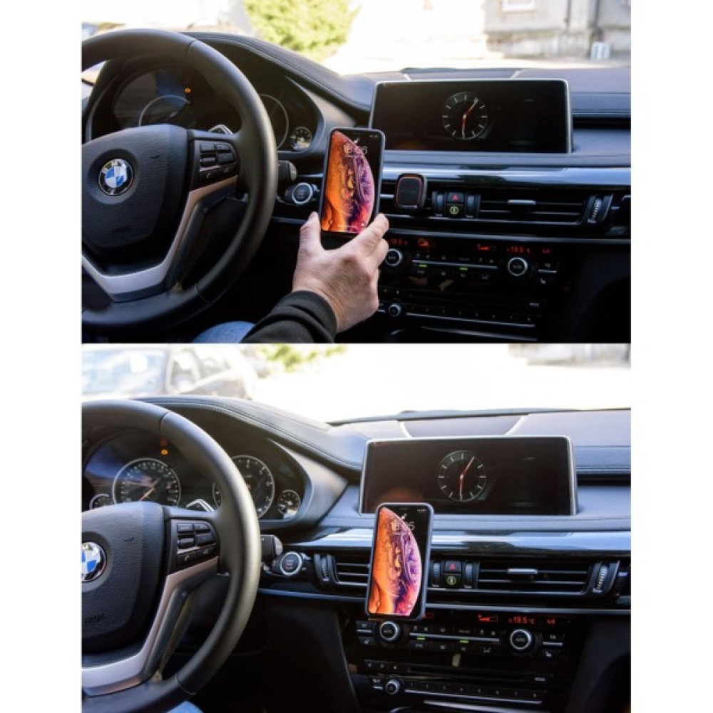 - Надійність: неодимові надміцні магніти надійно тримають телефон на панелі, а надійні кріплення - сам тримач у вентиляційному отворі автомобіля;