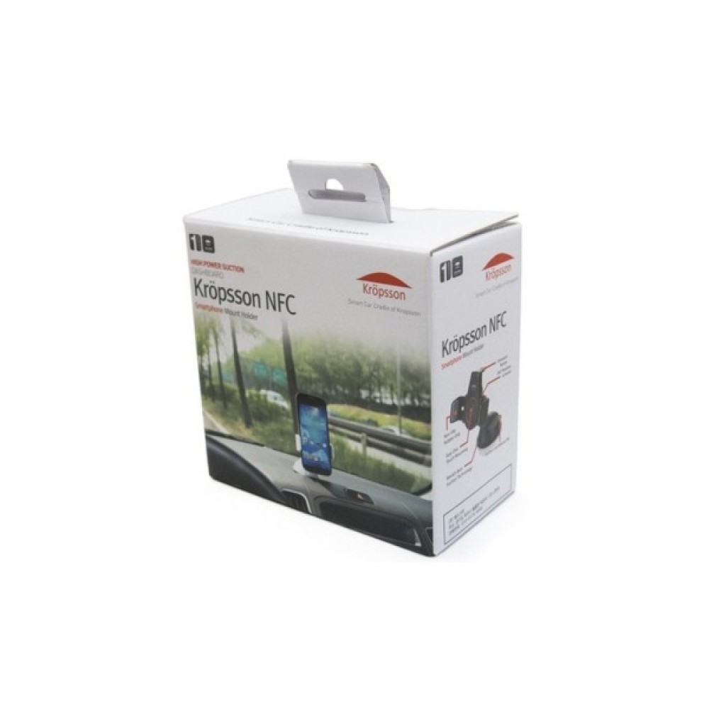 Універсальний утримувач Kropsson NFC для смартфонів і мобільних пристроїв. Оригінальний дизайн дозволяє Вам встановити смартфон на торпедо або в іншому зручному місці поблизу рулюючи, так щоб Ваш смартфон під час шляху був у Вас перед очима. Смартфон легко закріплюється в утримувачі за допомогою автоматичного захоплення, досить прикласти корпус Вашого смартфону до центральної кнопки на утримувачі.