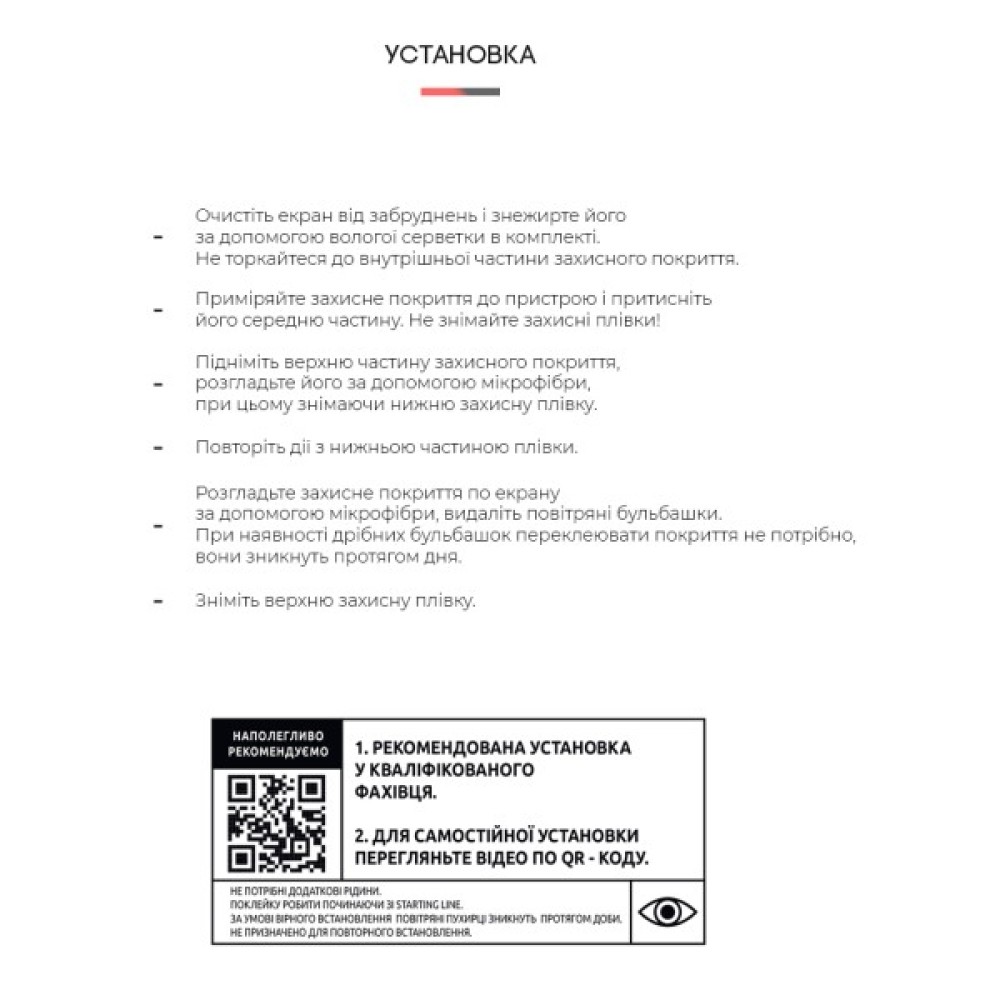 1. Очистите экран от загрязнений и обезжирьте его при помощи влажной салфетки в комплекте. Не дотрагивайтесь к внутренней части защитного покрытия.