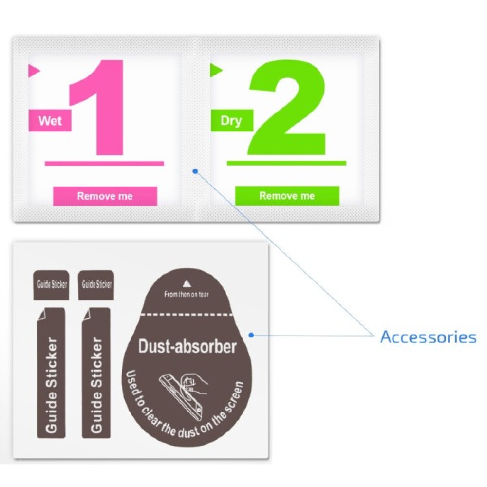 твердість 9Н; толщина 0.33 мм; уф-стабільний клей низької в'язкості, 100% прозорий, надійно без бульбашок фіксує скло на екрані; не спотворює передачу кольору при будь-якому освітленні