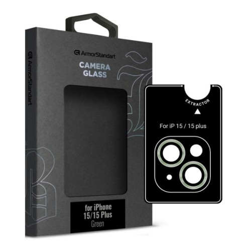 Скло захисне Armorstandart Camera glass Supreme Black Icon iPhone 15/15 Plus Green (ARM76589)