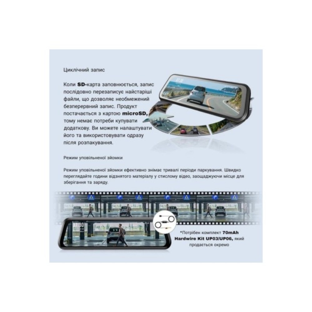 Коли ваш автомобіль припаркований, відеореєстратор автоматично записує 30-секундне відео при виявленні зіткнення, зберігаючи важливі докази для таких випадків, як страхові виплати або вирішення спорів навіть коли вас немає вдома.