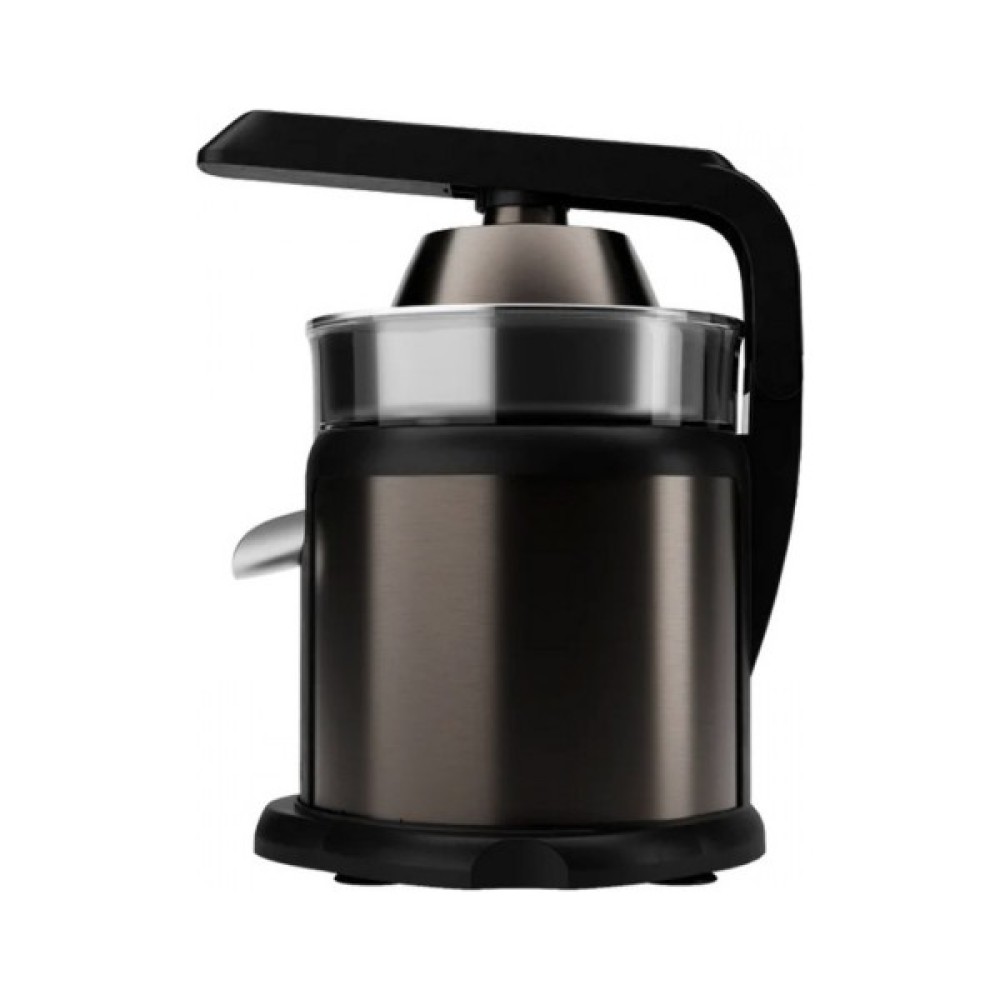 Обирайте необхідний розмір конуса із двох доступних та натискайте на прес. Пристрій автоматично вмикається при натисканні і вимикається без зовнішнього тиску. Закрита конструкція соковитискача захистить від бризок під час приготування.