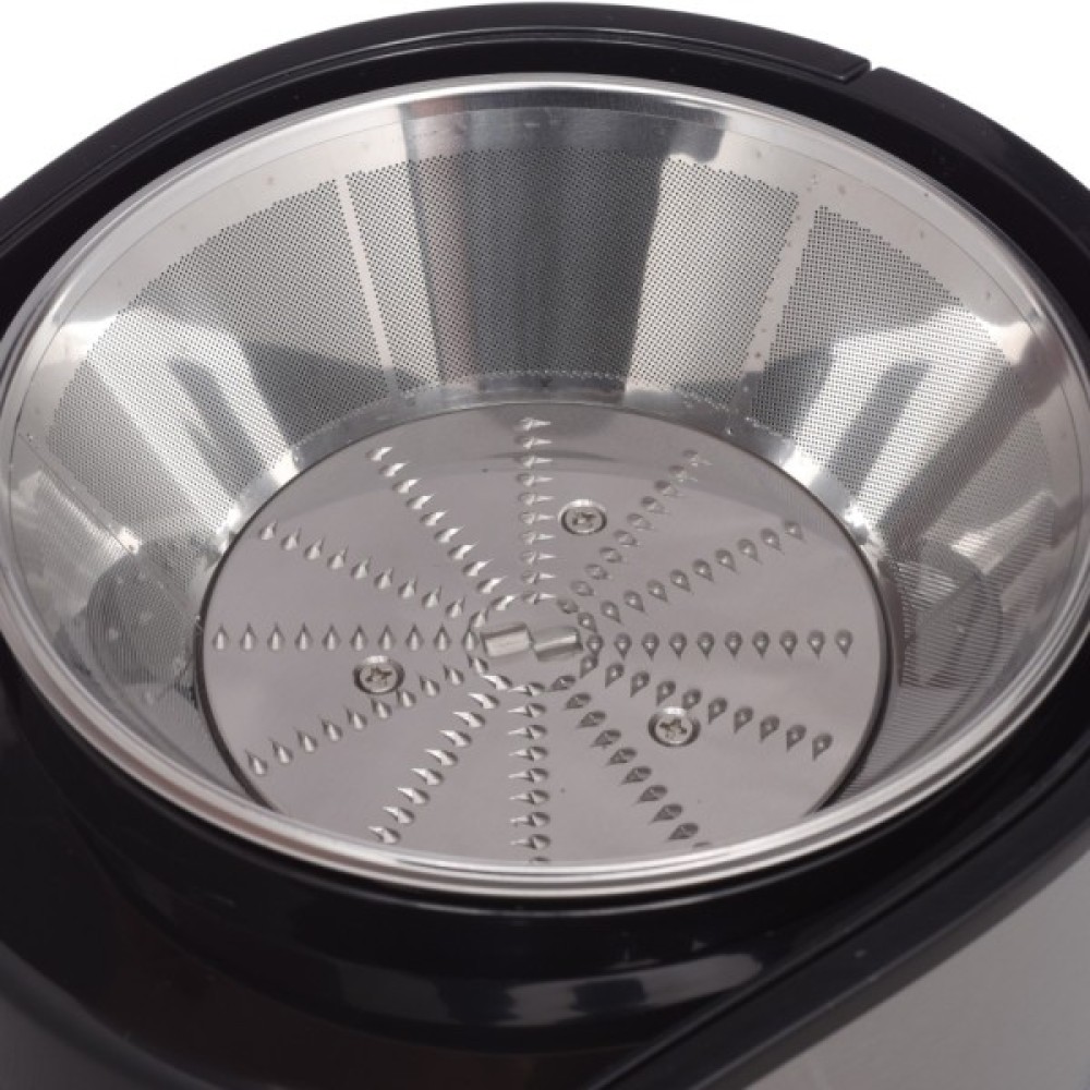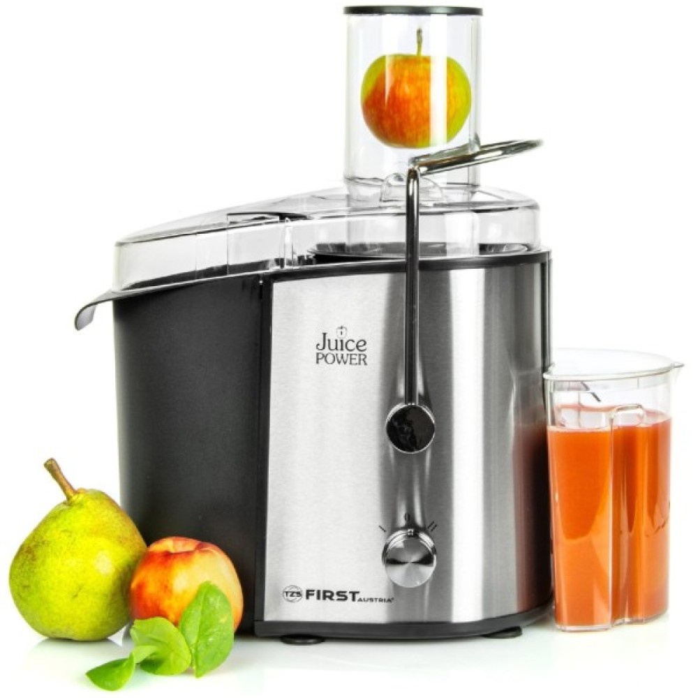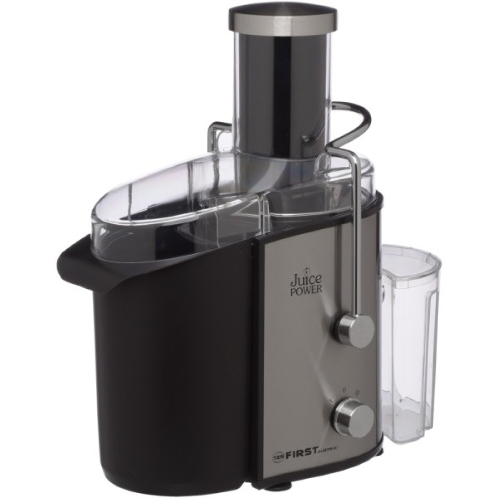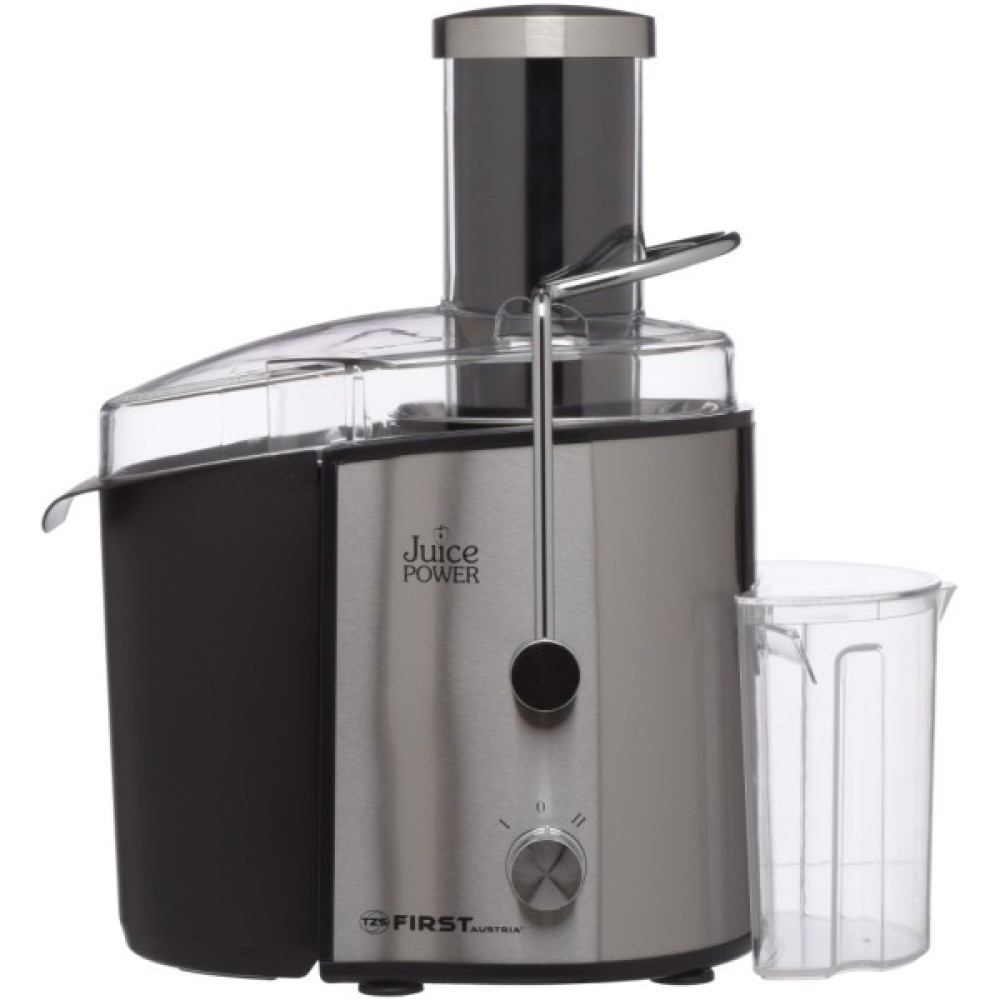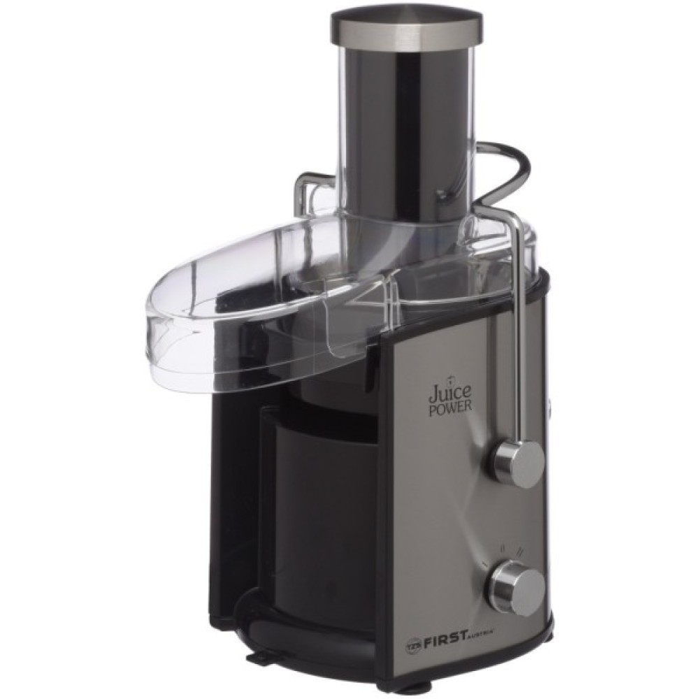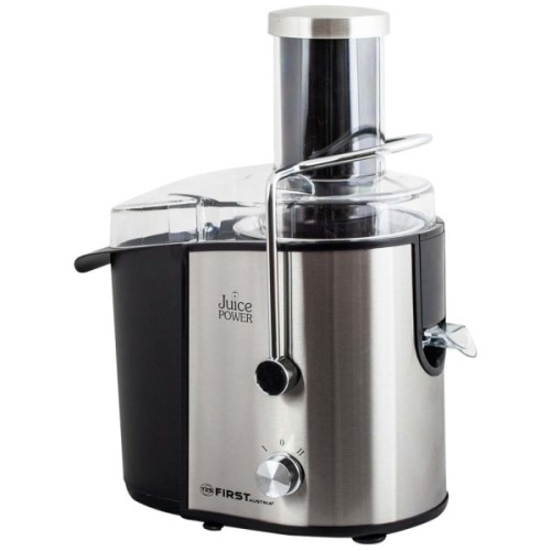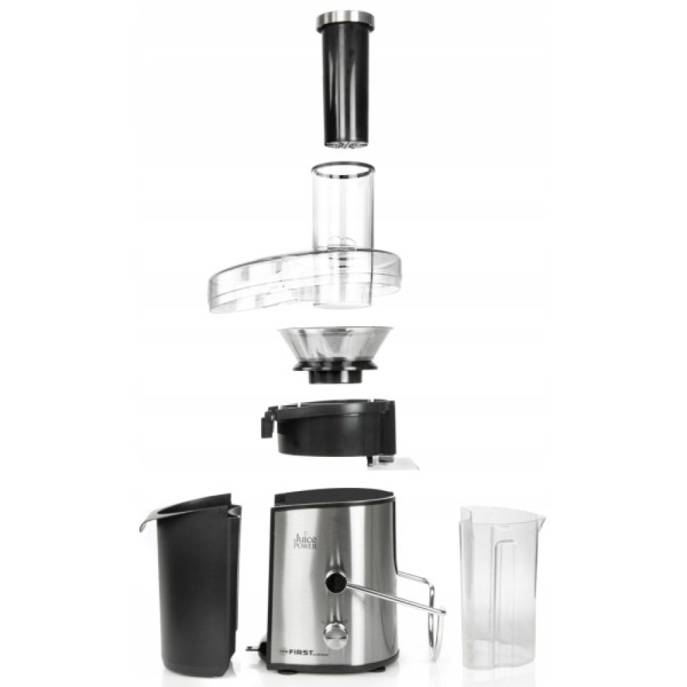 - Матеріал корпусу соковитискача виготовлений зі сталі.Соковитискач First також включає терку-фільтр з нержавіючої сталі.