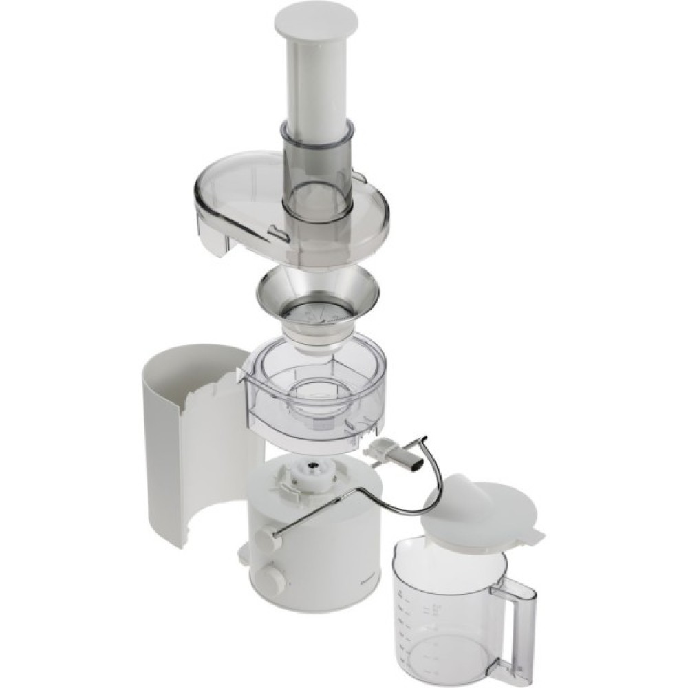 Вичавлювання максимального об’єму соку за допомогою міцних ножівУнікальний повністю металевий ротор Panasonic ефективно вичавлює максимальний об’єм однорідного соку без зайвої м’якоті, який легко пити навіть дітям. S-подібний ніж повністю металевого ротора надійно розрізає тверді серцевини фруктів, а ніж із малим кутом ріжучої кромки ретельно подрібнює їх. Фільтр тонкого очищення відокремлює сік від м’якоті, завдяки чому завжди забезпечується однорідна консистенція напою.